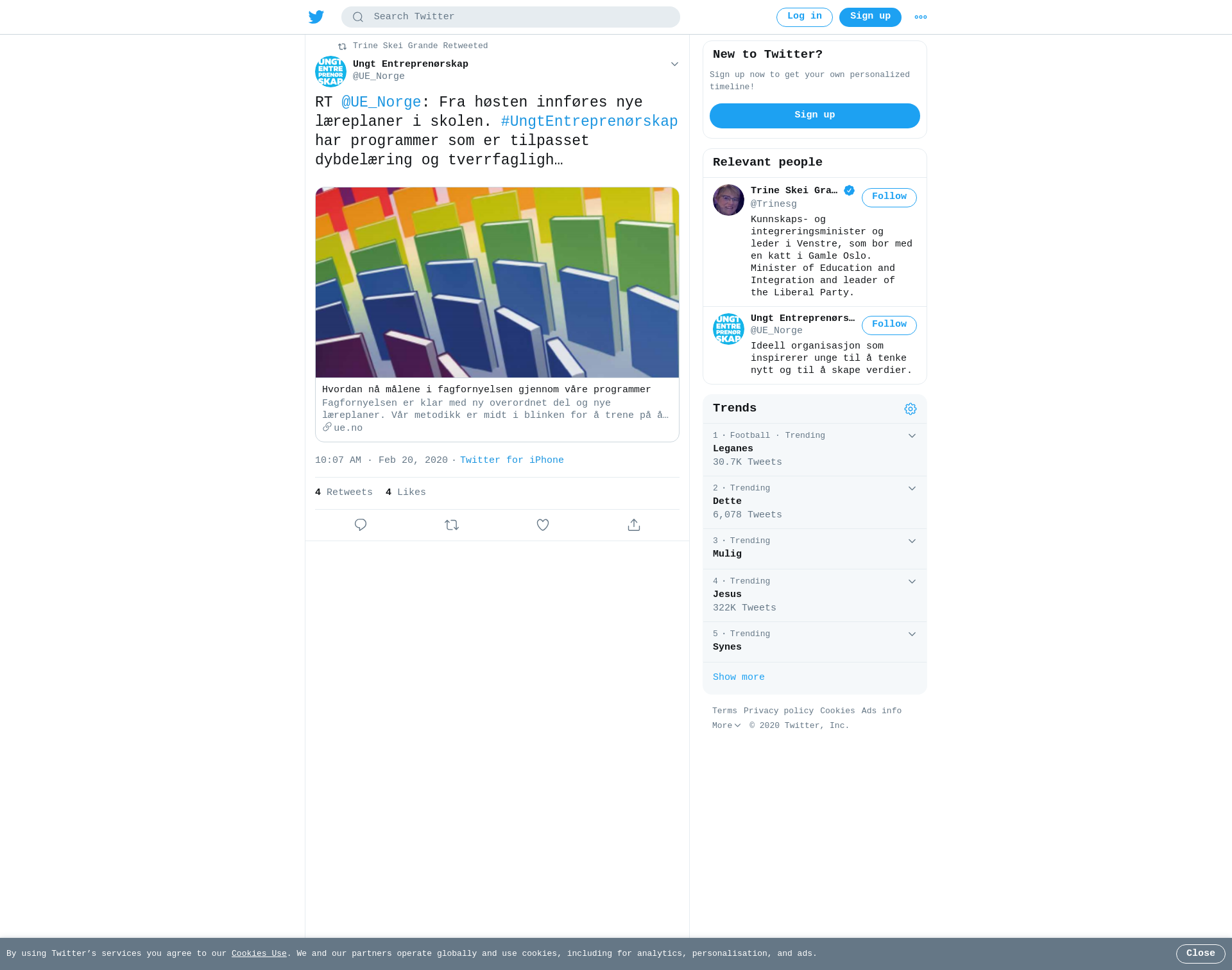 RT @UE_Norge: Fra høsten innføres nye læreplaner i skolen. #UngtEntreprenørskap har programmer som er tilpasset dybdelæring og tverrfaglighet - og som gir mulighet til å jobbe med #bærekraft og #livsmestring @Trinesg