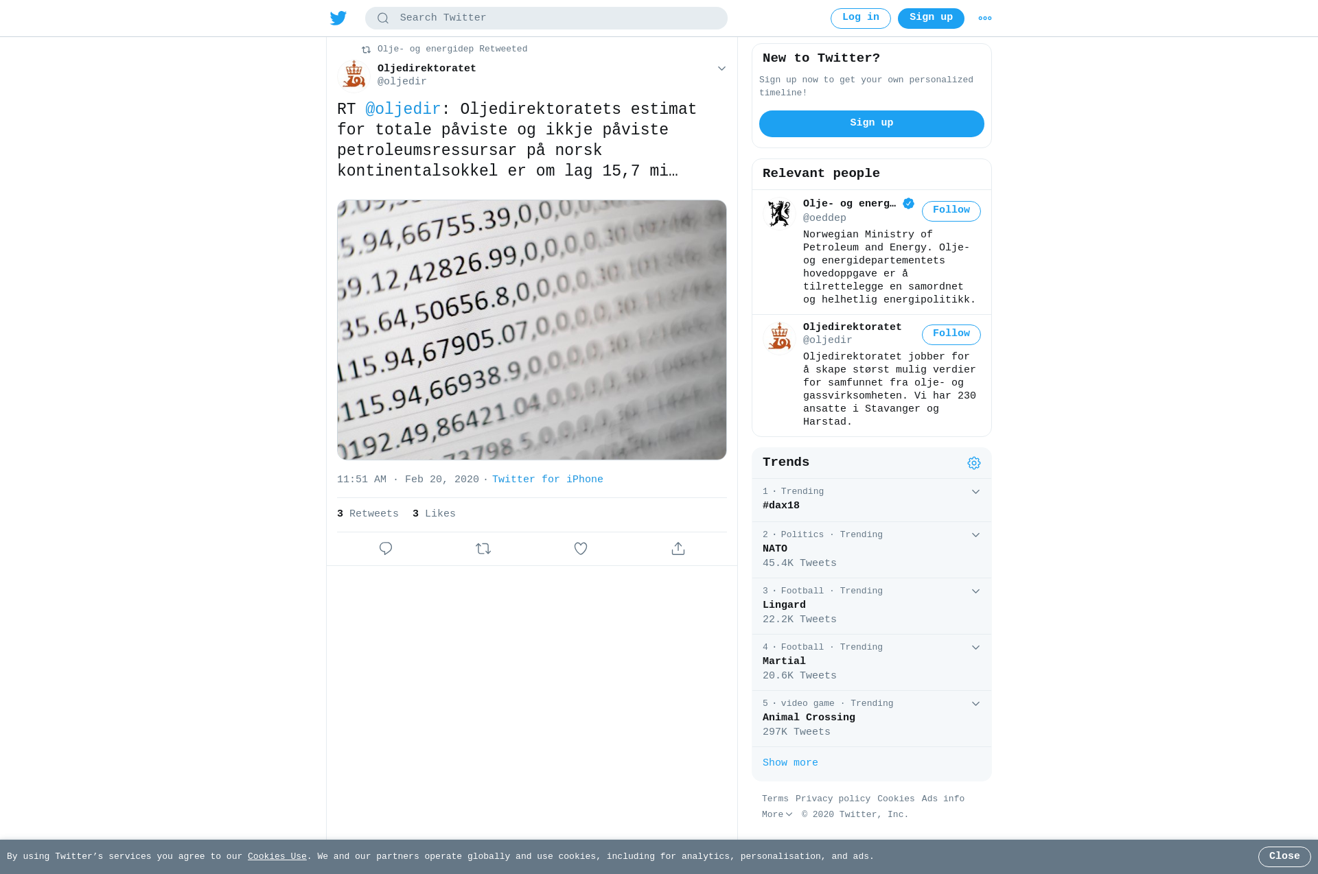 RT @oljedir: Oljedirektoratets estimat for totale påviste og ikkje påviste petroleumsressursar på norsk kontinentalsokkel er om lag 15,7 milliardar standard kubikkmeter oljeekvivalentar. Les ressursrekneskapen per 31.12.2019: https://t.co/pKx33iKM89 @oeddep #norskoljeoggass #norskpetroleum https://t.co/pIWmQ7irsn