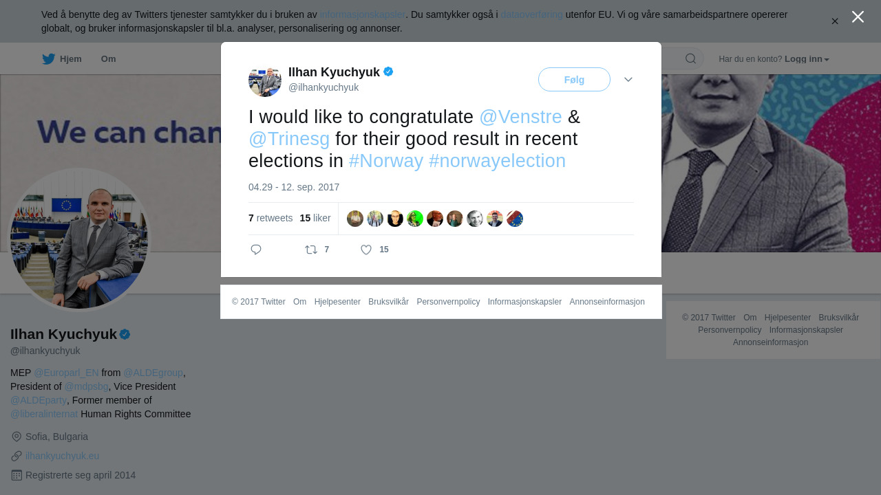 RT @ilhankyuchyuk: I would like to congratulate @Venstre & @Trinesg for their good result in recent elections in #Norway #norwayelection