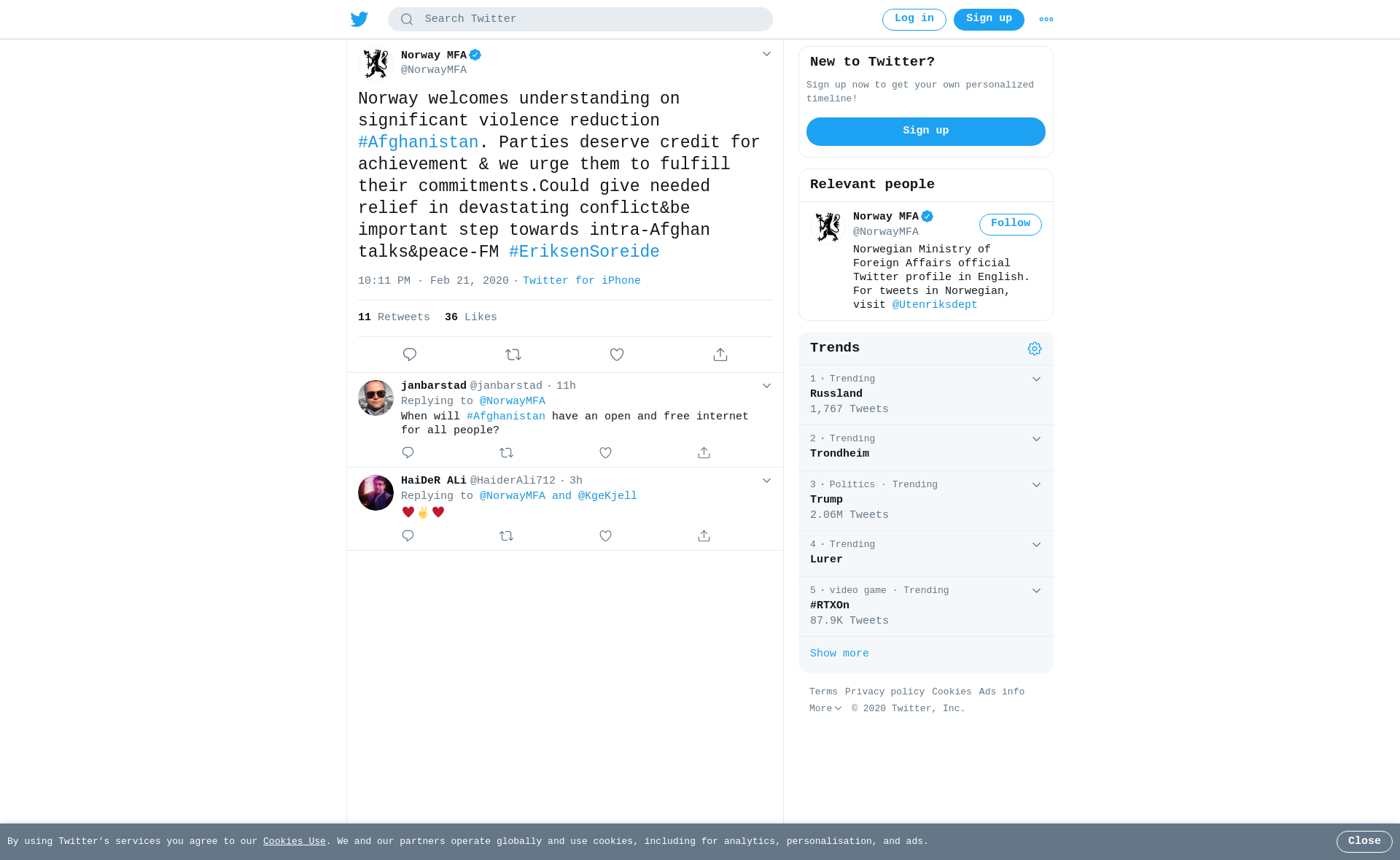 Norway welcomes understanding on significant violence reduction #Afghanistan. Parties deserve credit for achievement & we urge them to fulfill their commitments.Could give needed relief in devastating conflict&be important step towards intra-Afghan talks&peace-FM #EriksenSoreide