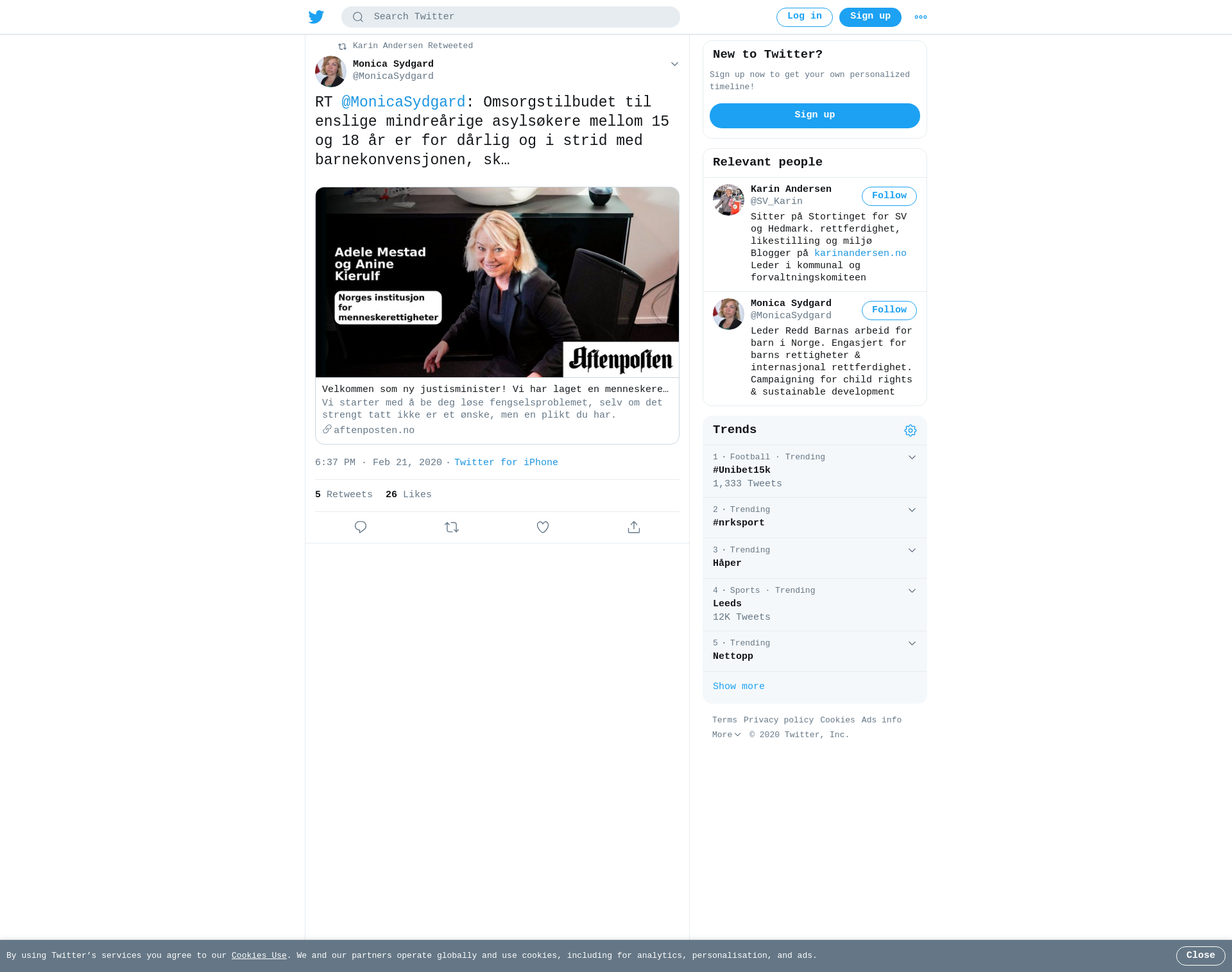 RT @MonicaSydgard: Omsorgstilbudet til enslige mindreårige asylsøkere mellom 15 og 18 år er for dårlig og i strid med barnekonvensjonen, skriver @anineki og Adele Mestad i @NIM_Norge https://t.co/st2n6lLdQ6 #barnsrettigheter #førstogfremstbarn