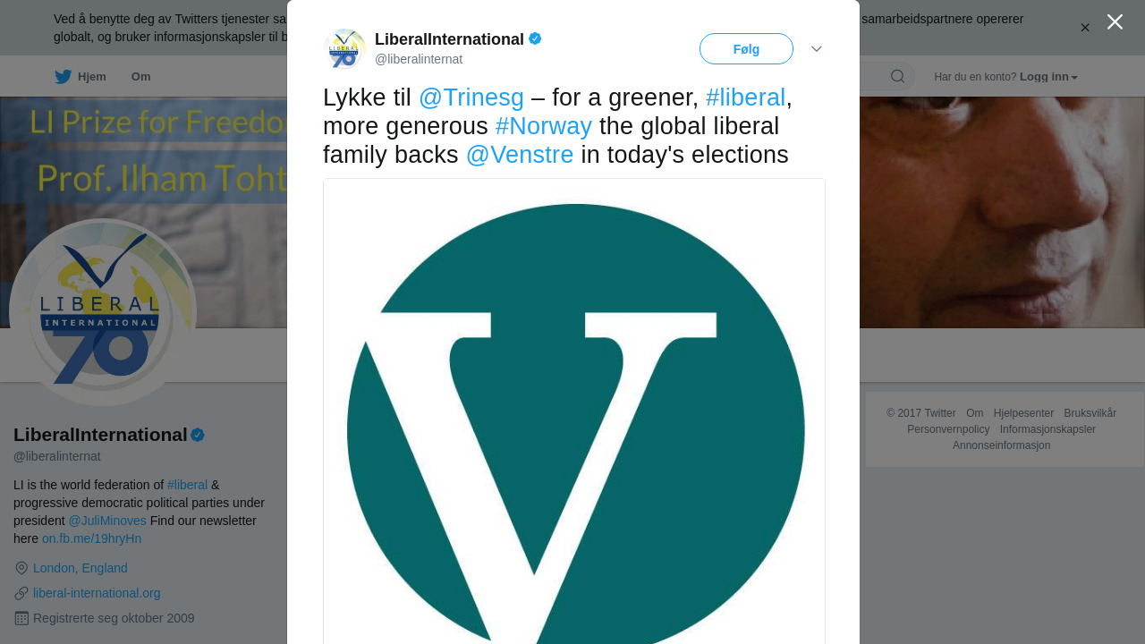 RT @liberalinternat: Lykke til @Trinesg – for a greener, #liberal, more generous #Norway the global liberal family backs @Venstre in tod… https://t.co/9nYNxGZHo5
