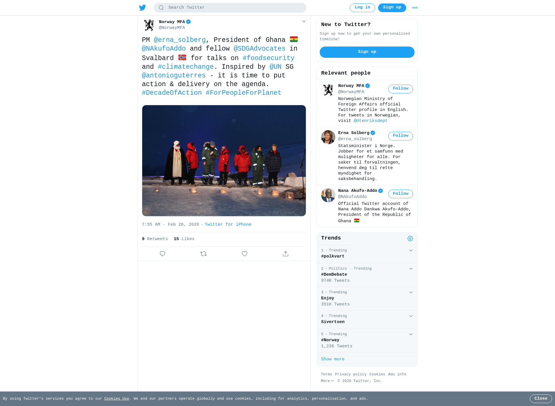 PM @erna_solberg, President of Ghana 🇬🇭 @NAkufoAddo and fellow @SDGAdvocates in Svalbard 🇳🇴 for talks on #foodsecurity and #climatechange. Inspired by @UN SG @antonioguterres - it is time to put action & delivery on the agenda. #DecadeOfAction #ForPeopleForPlanet https://t.co/6HQveDQFyv