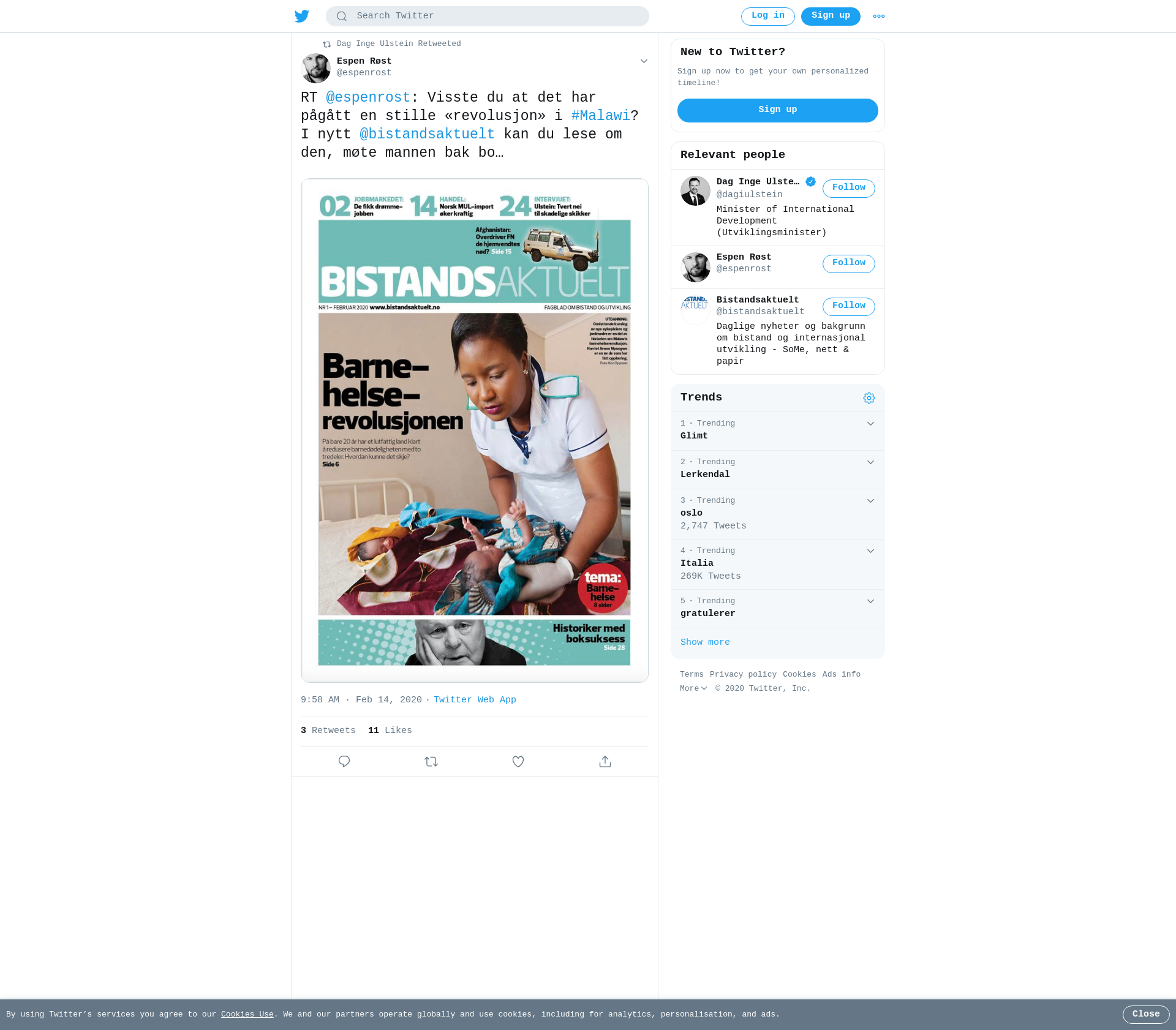 RT @espenrost: Visste du at det har pågått en stille «revolusjon» i #Malawi? I nytt @bistandsaktuelt kan du lese om den, møte mannen bak boksuksessen «Afrika» - og få vite hva @dagiulstein vil satse på i år, for å nå bærekraftsmålene det neste tiåret. Ikke abb; her: https://t.co/d9lt6oAMpe https://t.co/GGzg0SIFw3