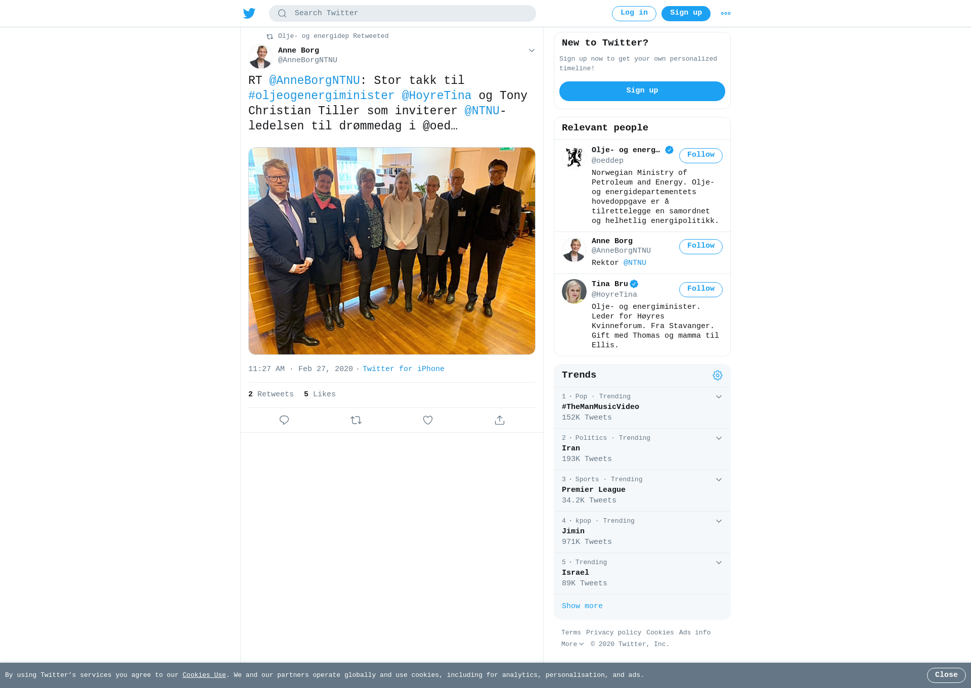 RT @AnneBorgNTNU: Stor takk til #oljeogenergiminister @HoyreTina og Tony Christian Tiller som inviterer @NTNU-ledelsen til drømmedag i @oeddep. Vi lytter, lærer og har gode samtaler om viktige tema, som en mer bærekraftig samfunnutvikling. @anneborresen @annikmfet @joernwroldsen #bærekraft #energi https://t.co/OT1uX3vuEs