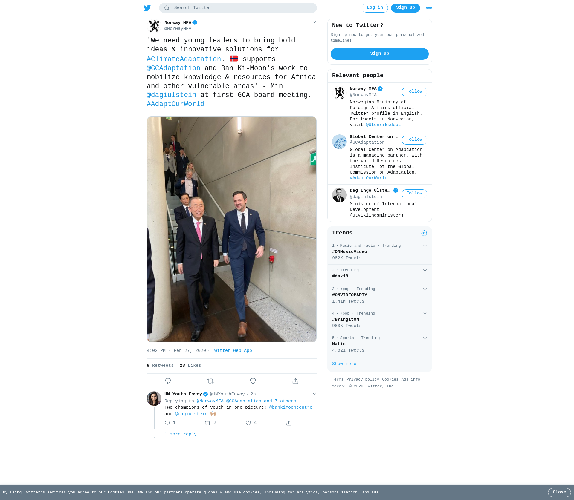 'We need young leaders to bring bold ideas & innovative solutions for #ClimateAdaptation. 🇳🇴 supports @GCAdaptation and Ban Ki-Moon's work to mobilize knowledge & resources for Africa and other vulnerable areas' - Min @dagiulstein at first GCA board meeting.