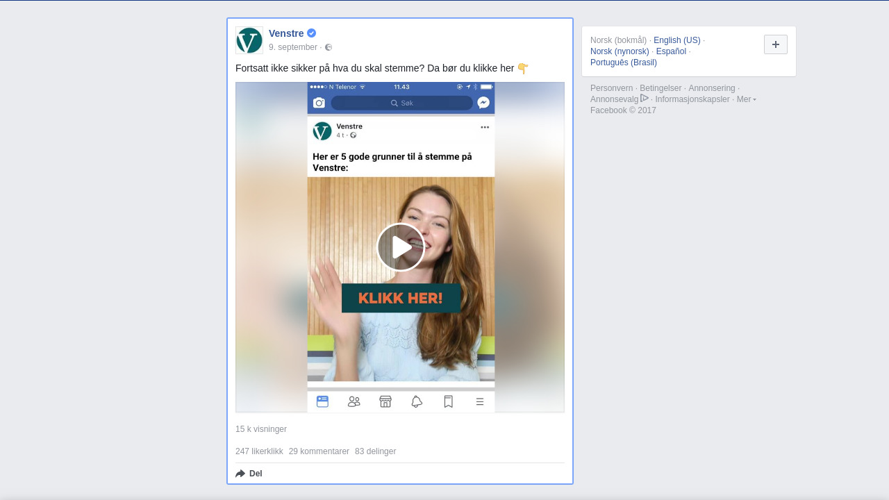 venstre.no på Facebook