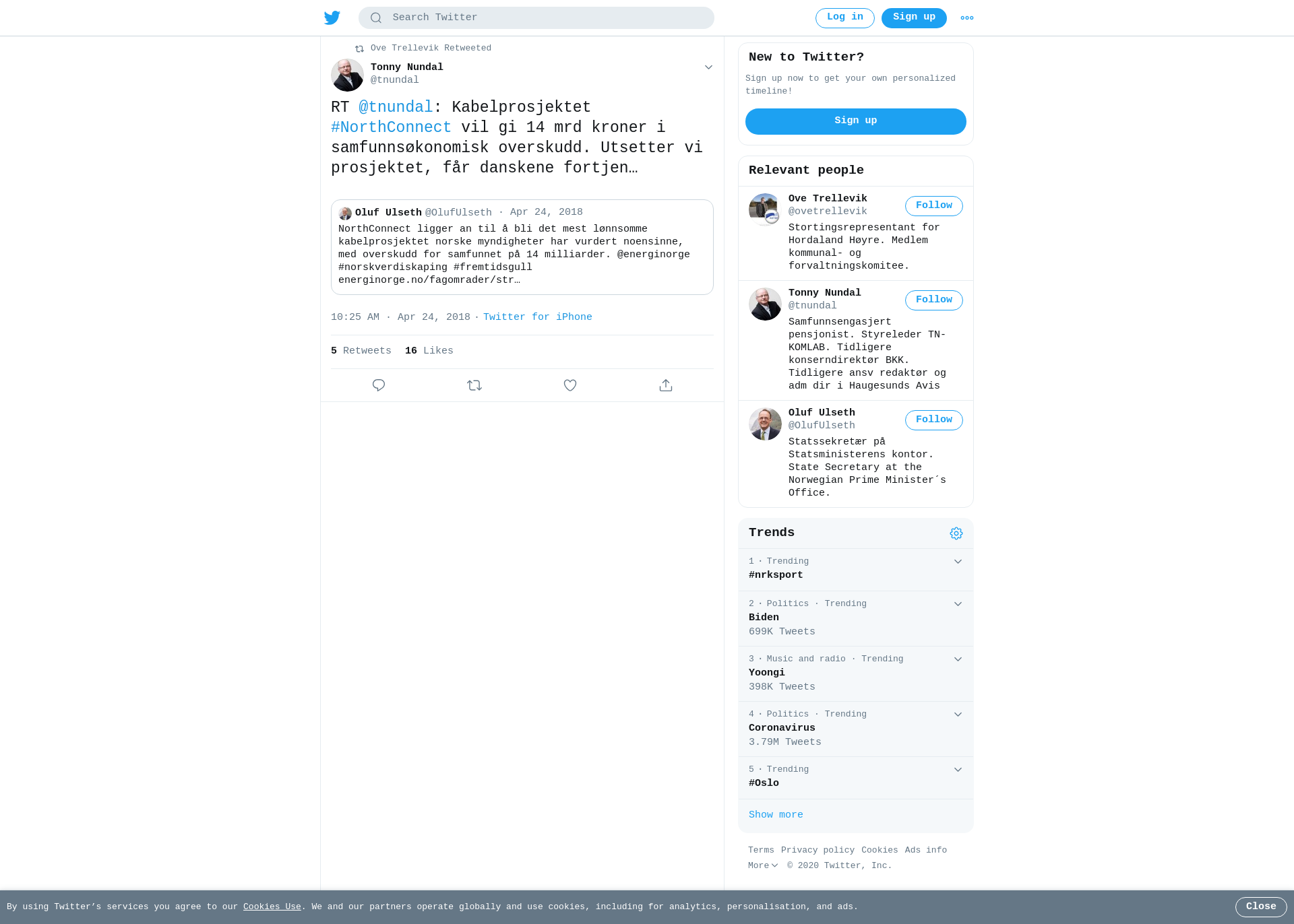 RT @tnundal: Kabelprosjektet #NorthConnect vil gi 14 mrd kroner i samfunnsøkonomisk overskudd. Utsetter vi prosjektet, får danskene fortjenesten av å handle med vår kraft. https://t.co/RCooNfIhnA