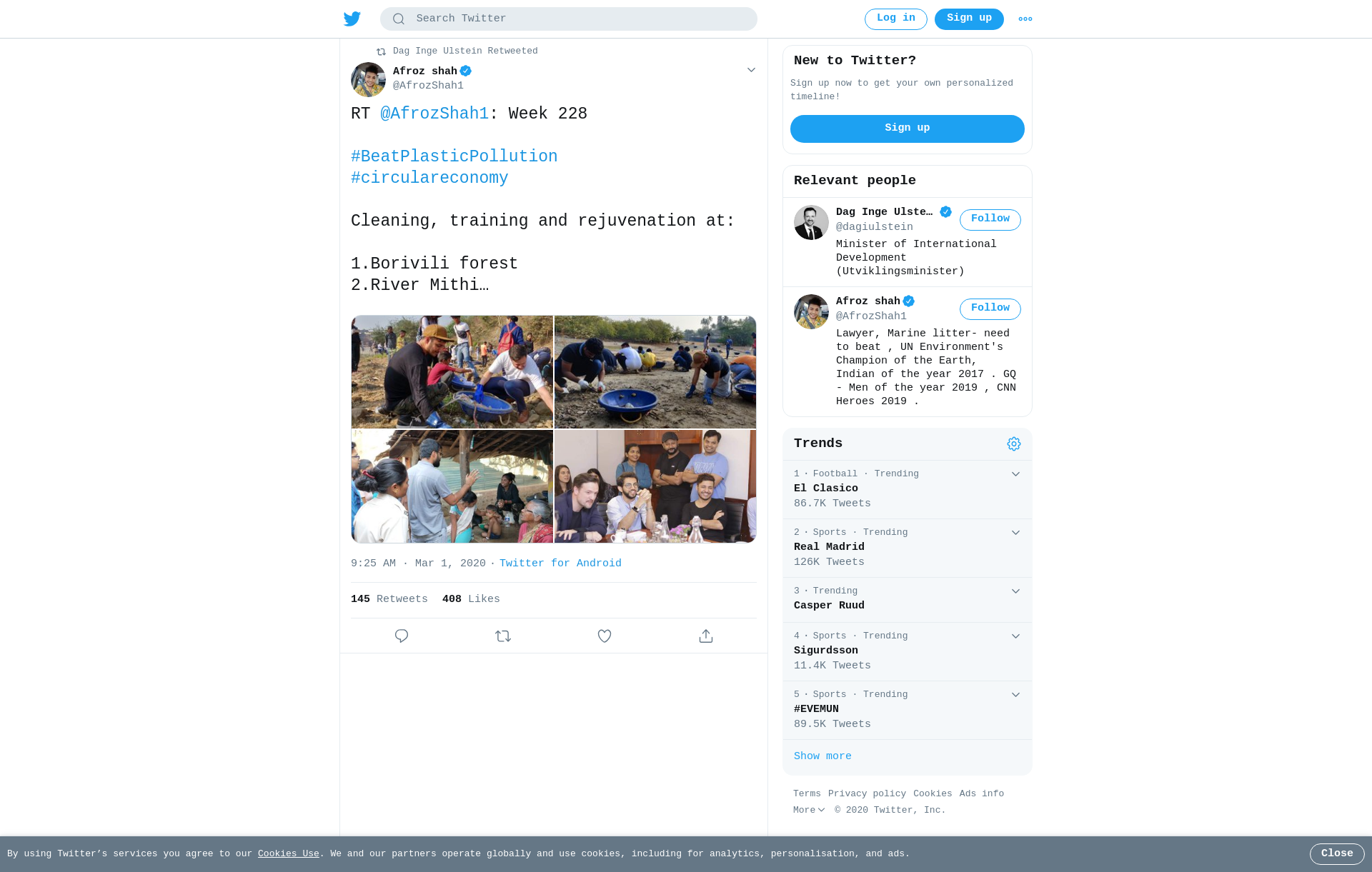 RT @AfrozShah1: Week 228 #BeatPlasticPollution #circulareconomy Cleaning, training and rejuvenation at: 1.Borivili forest 2.River Mithi…