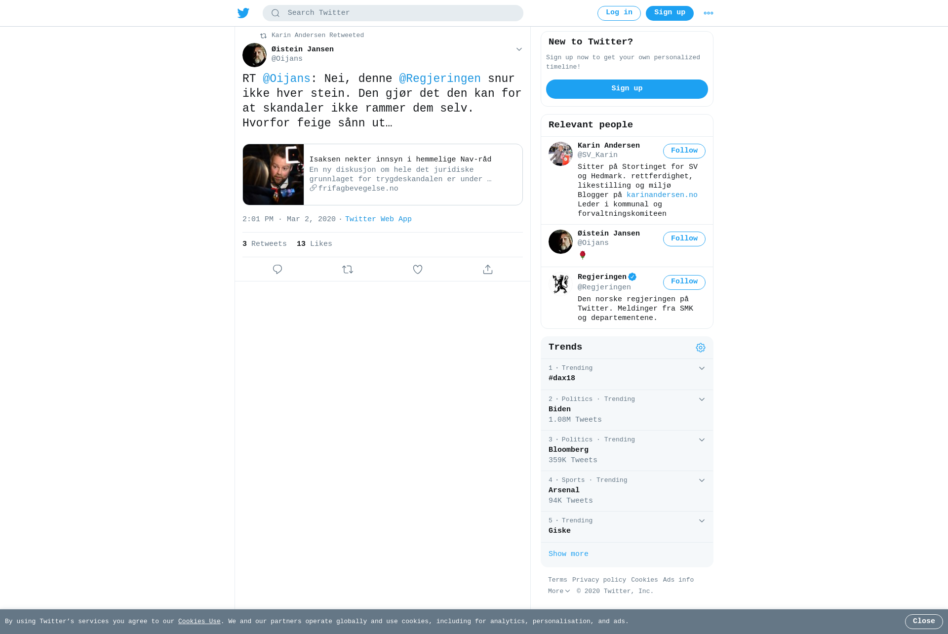RT @Oijans: Nei, denne @Regjeringen snur ikke hver stein. Den gjør det den kan for at skandaler ikke rammer dem selv. Hvorfor feige sånn ut, @konservativ?