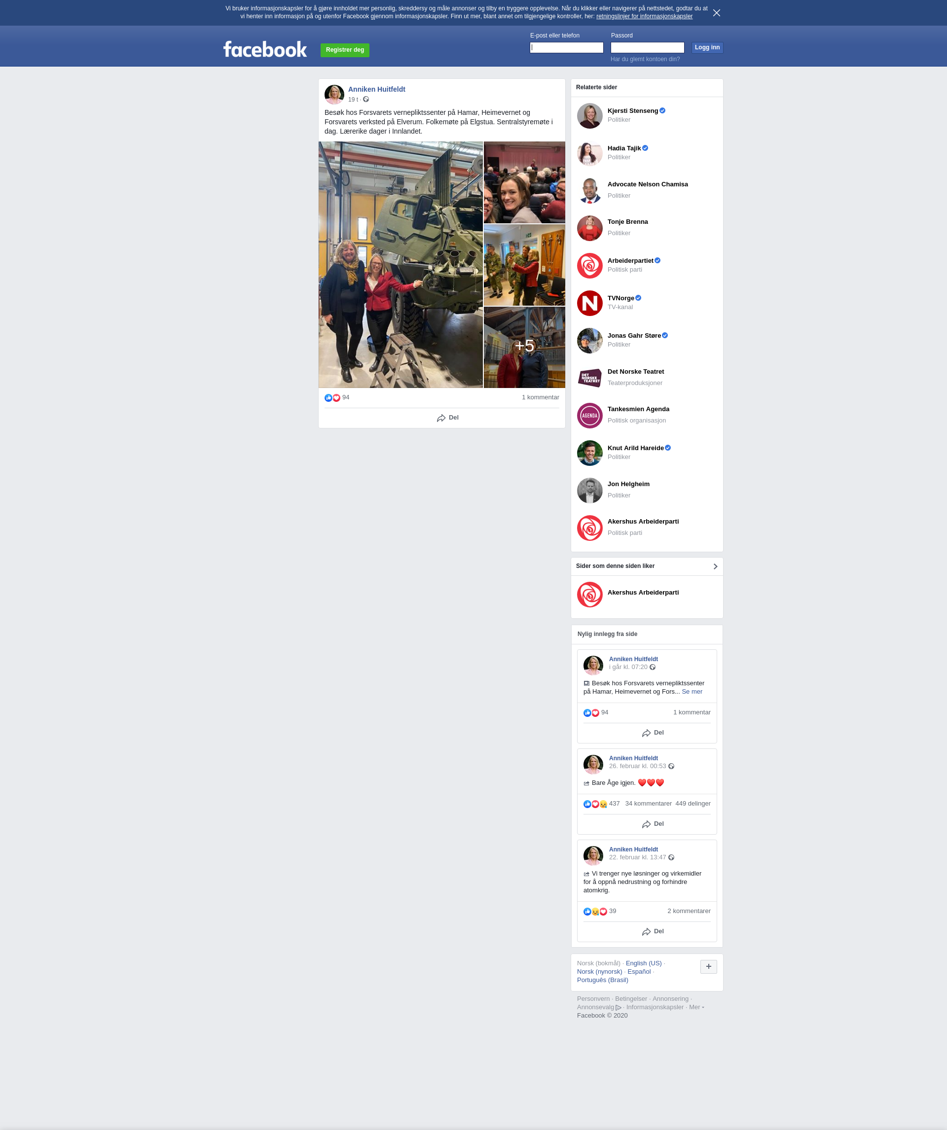 Besøk hos Forsvarets vernepliktssenter på Hamar, Heimevernet og Forsvarets verksted på Elverum. Folkemøte på Elgstua. Sentralstyremøte i dag. Lærerike dager i Innlandet.