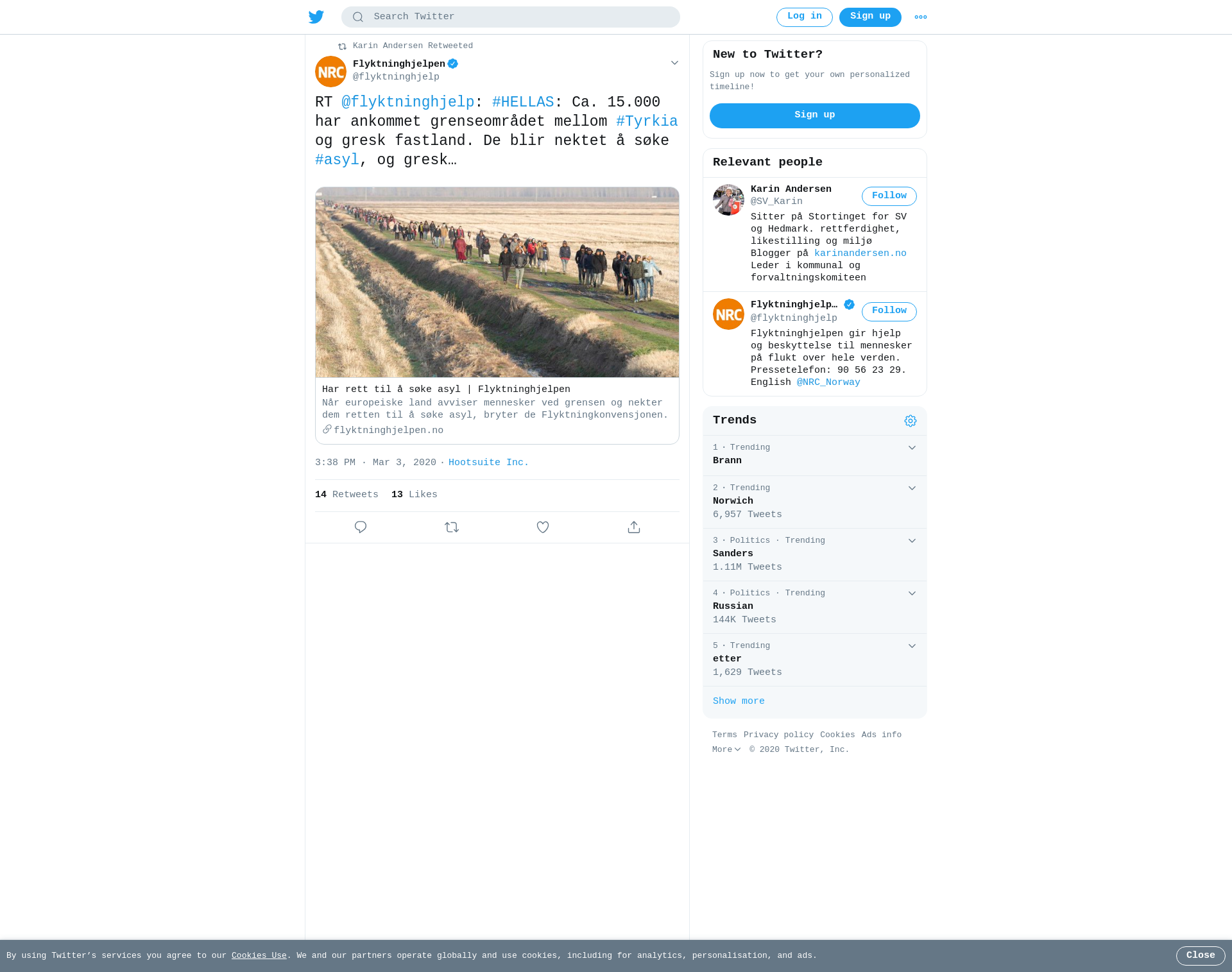 RT @flyktninghjelp: #HELLAS: Ca. 15.000 har ankommet grenseområdet mellom #Tyrkia og gresk fastland. De blir nektet å søke #asyl, og gresk politi bruker tåregass for å hindre dem i å komme inn i landet.