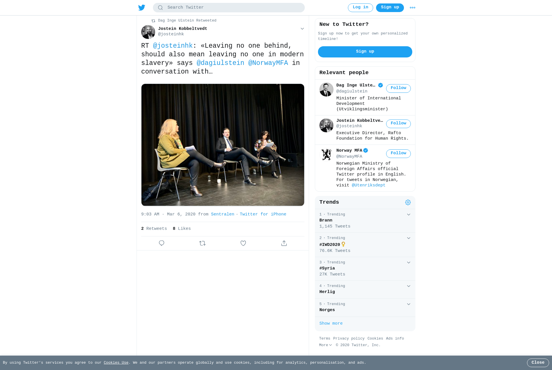 RT @josteinhk: «Leaving no one behind, should also mean leaving no one in modern slavery» says @dagiulstein @NorwayMFA in conversation with @UN special rapporteur on #modernslavery @ubhoola62 @RaftoFoundation #sdg8 #bizhumanrights https://t.co/WaGotjbi2n