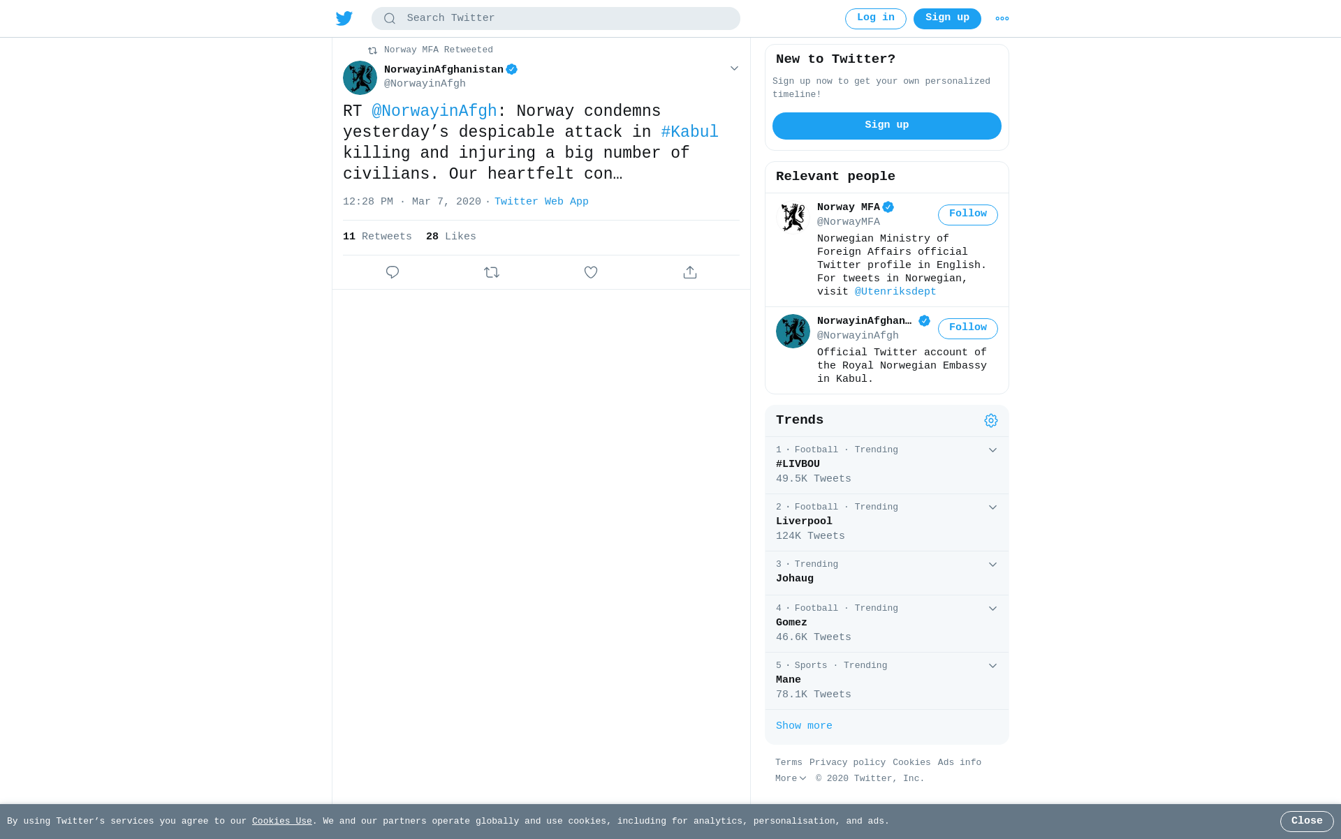 RT @NorwayinAfgh: Norway condemns yesterday’s despicable attack in #Kabul killing and injuring a big number of civilians. Our heartfelt condolences to the victims and their families. The violence must come to an end. Norway stands with the people of #Afghanistan.