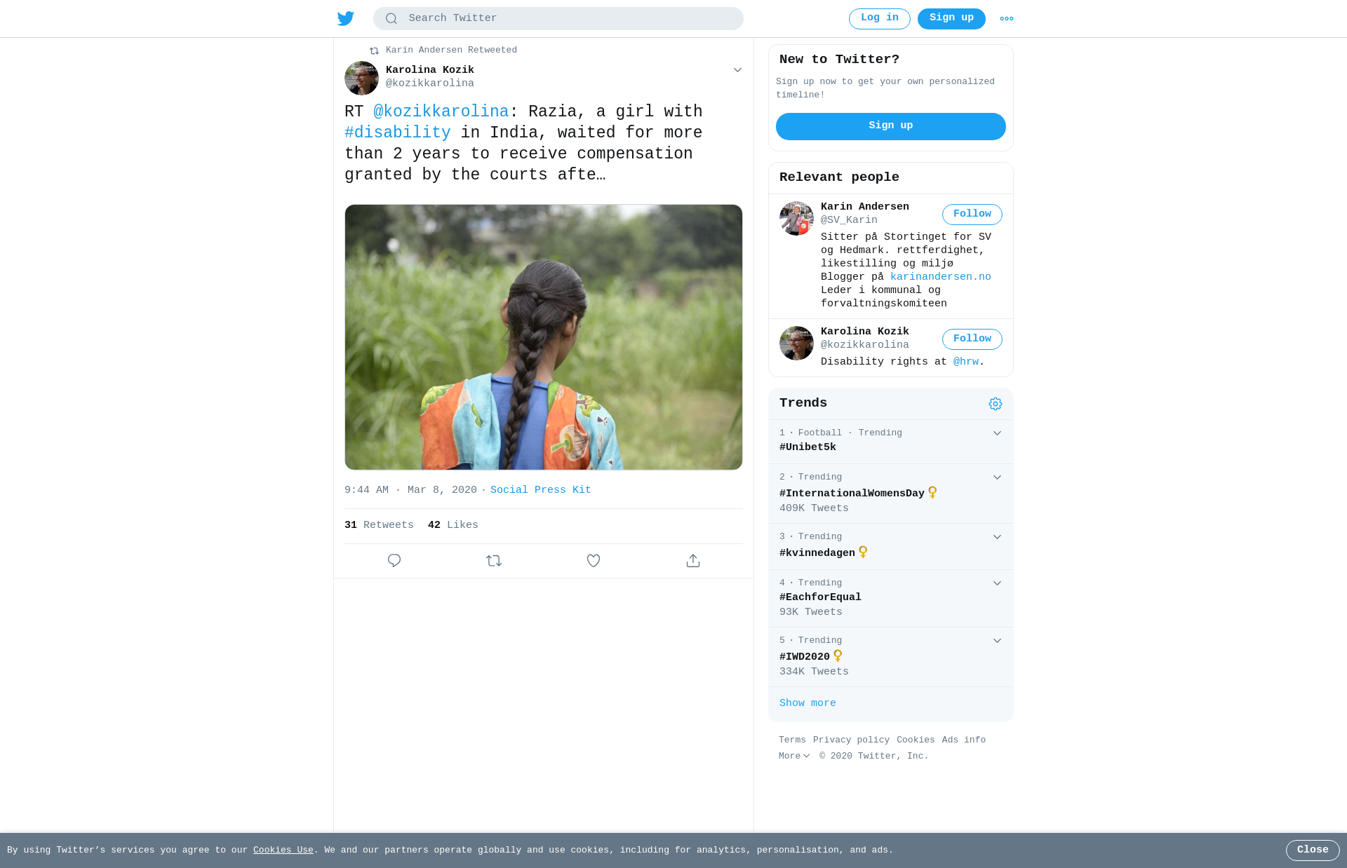 RT @kozikkarolina: Razia, a girl with #disability in India, waited for more than 2 years to receive compensation granted by the courts after she was raped. She finally received it, but many more survivors of sexual violence are still waiting for justice: https://t.co/9qh7FJPVfJ #MeToo #IWD2020 https://t.co/SDocwiwa3S