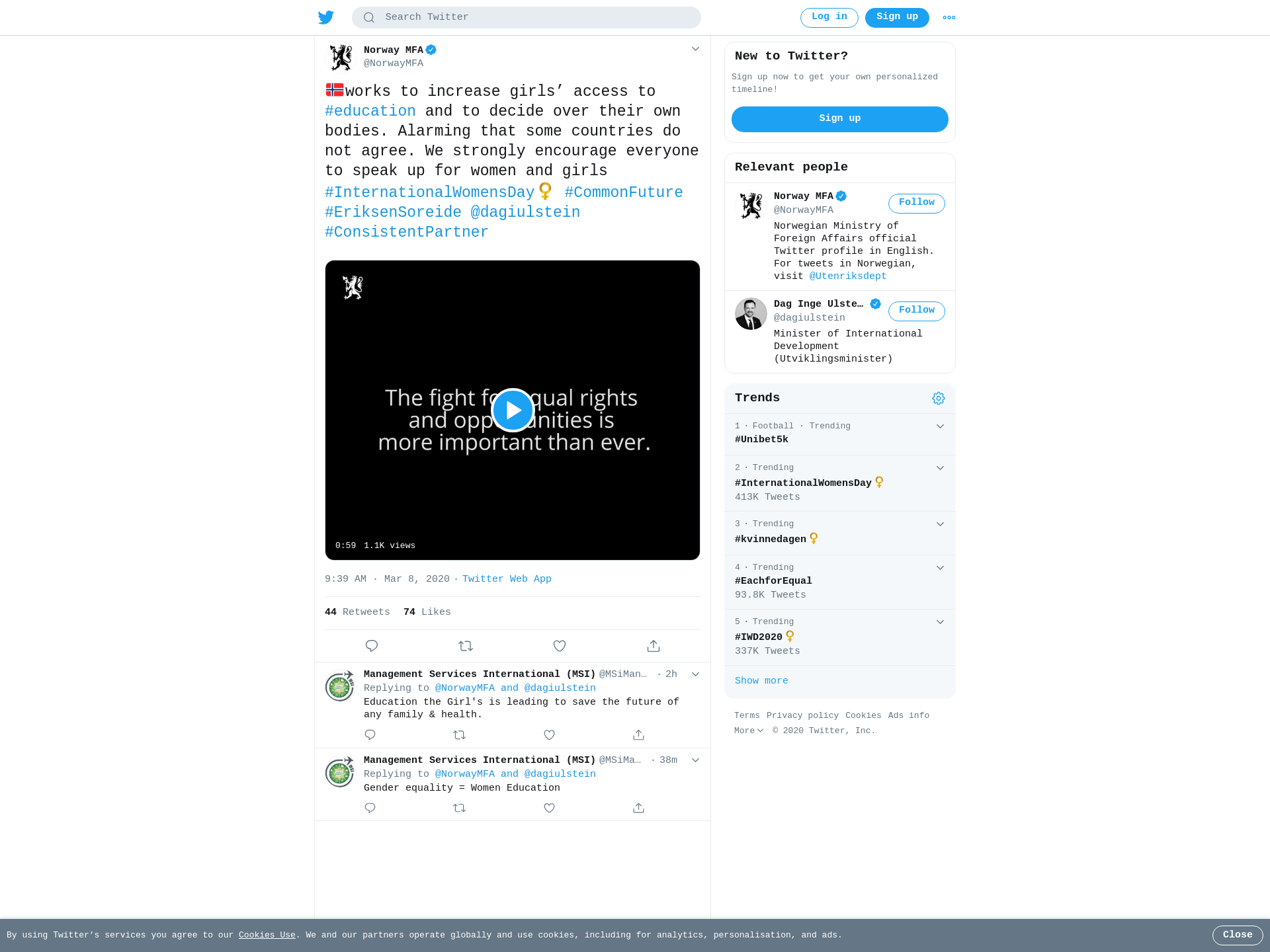 🇳🇴works to increase girls’ access to #education and to decide over their own bodies. Alarming that some countries do not agree. We strongly encourage everyone to speak up for women and girls #InternationalWomensDay #CommonFuture #EriksenSoreide @dagiulstein #ConsistentPartner https://t.co/W4RgLMwgk4