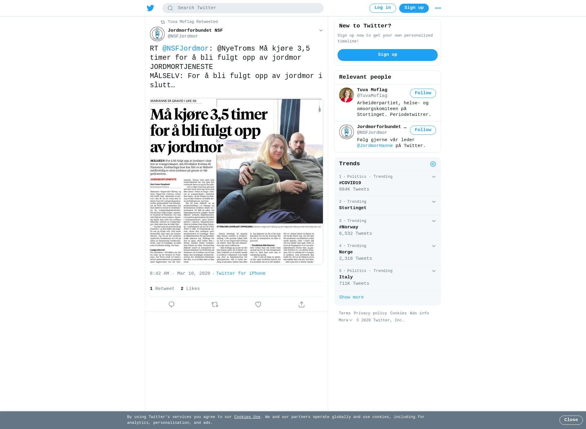 RT @NSFJordmor: @NyeTroms Må kjøre 3,5 timer for å bli fulgt opp av jordmor JORDMORTJENESTE MÅLSELV: For å bli fulgt opp av jordmor i slutt…