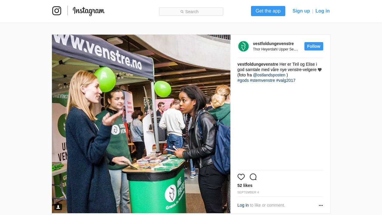 Her er Tiril og Elise i god samtale med våre nye venstre-velgere 💚 (foto fra @ostlandsposten ) #gods #stemvenstre #valg2017