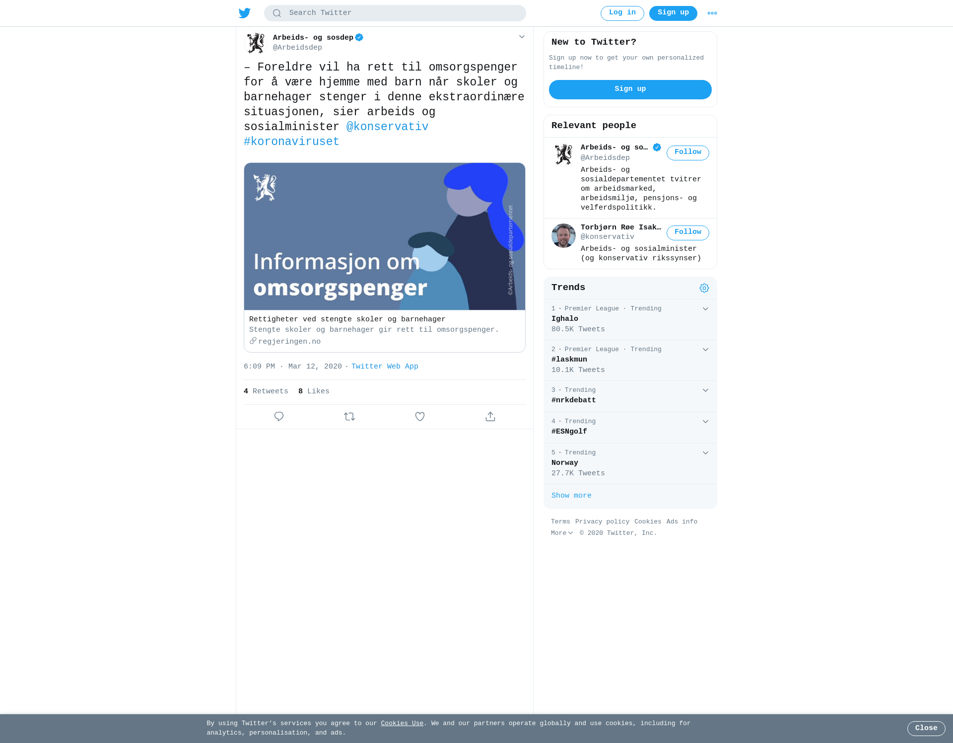– Foreldre vil ha rett til omsorgspenger for å være hjemme med barn når skoler og barnehager stenger i denne ekstraordinære situasjonen, sier arbeids og sosialminister @konservativ #koronaviruset https://t.co/q4eSgjJWTQ
