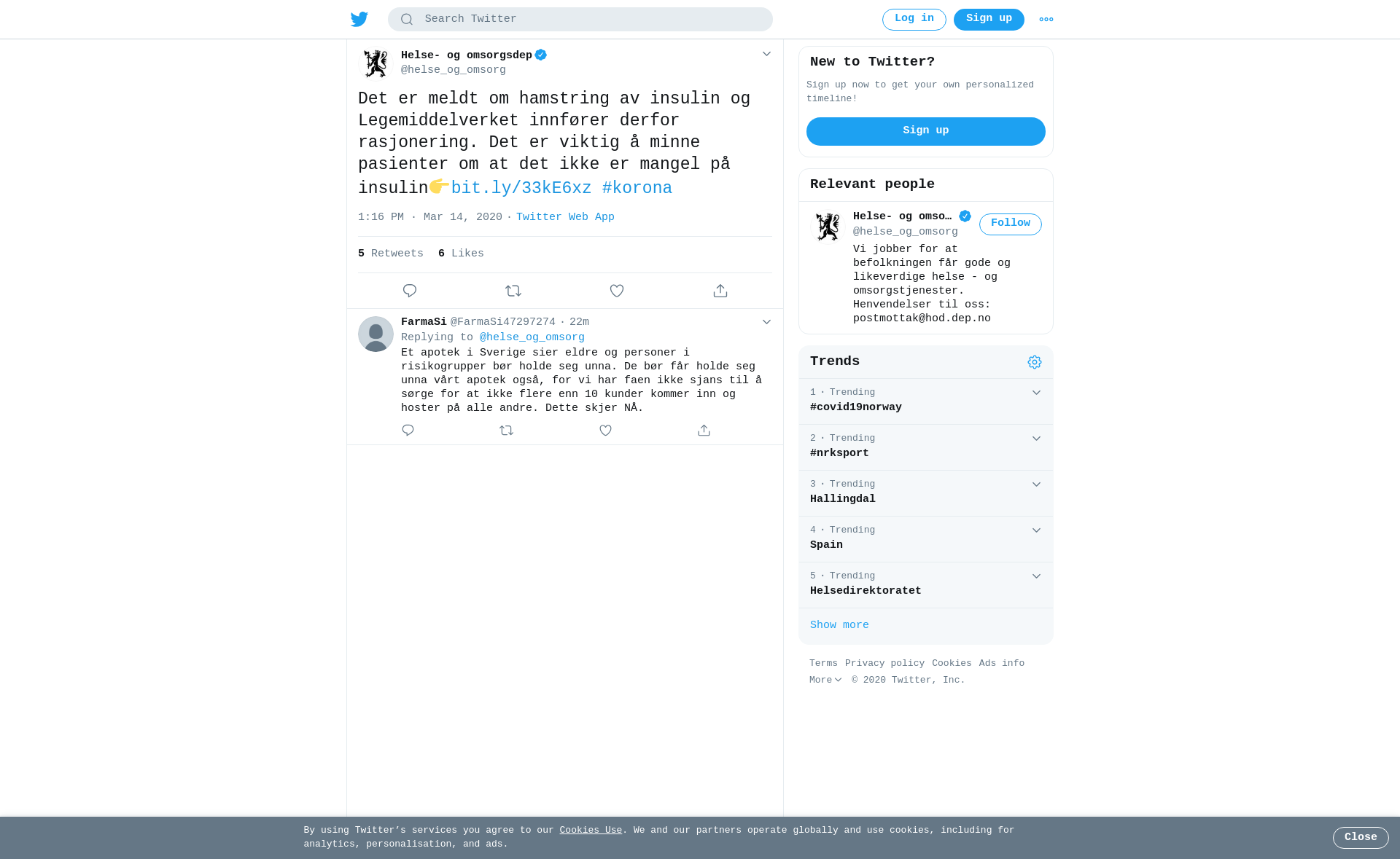 Det er meldt om hamstring av insulin og Legemiddelverket innfører derfor rasjonering. Det er viktig å minne pasienter om at det ikke er mangel på insulin👉https://t.co/iCIYUxIney #korona