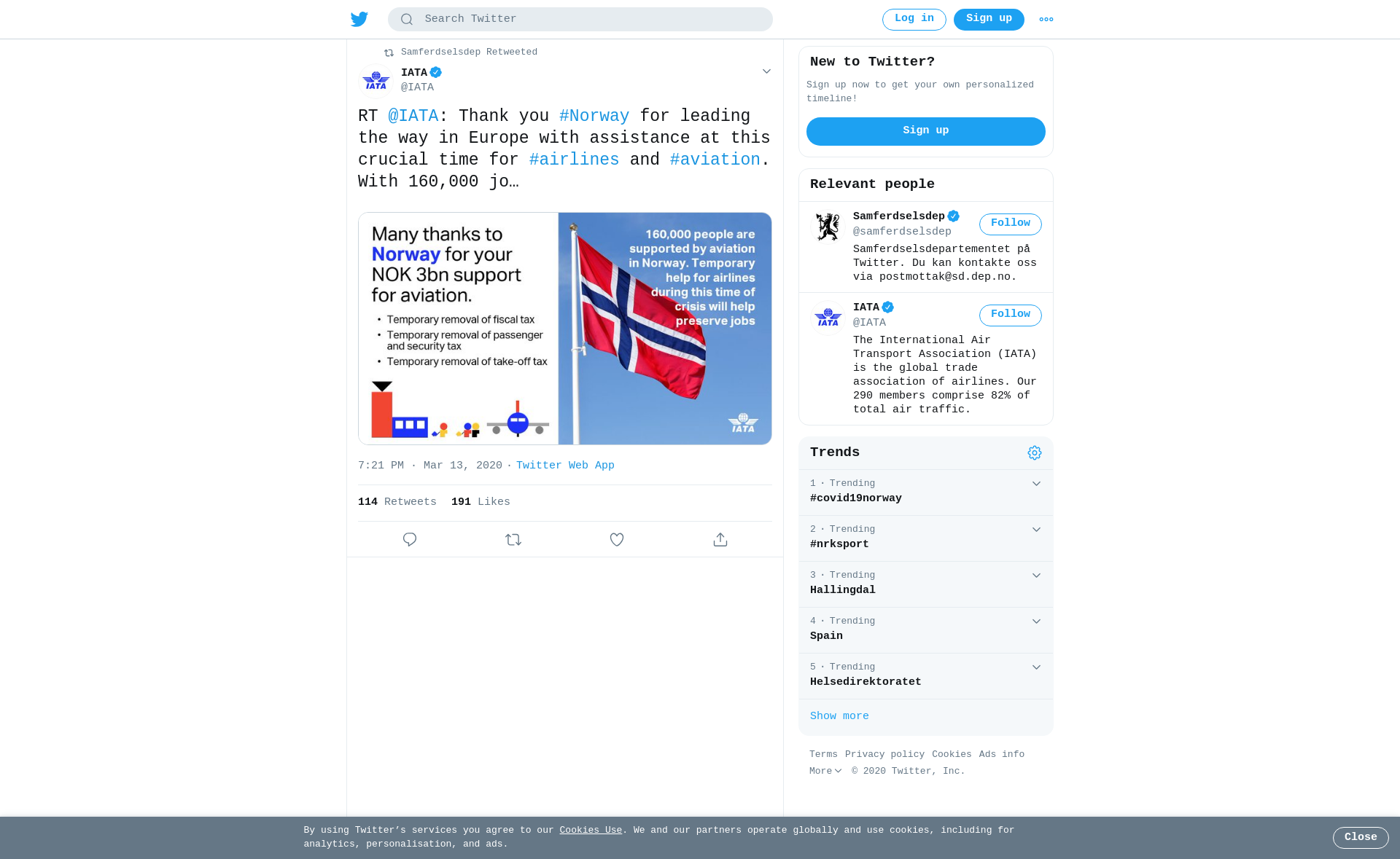 RT @IATA: Thank you #Norway for leading the way in Europe with assistance at this crucial time for #airlines and #aviation. With 160,000 jobs at stake these measures will help at a time of crisis. @erna_solberg https://t.co/f01YPuUIkf