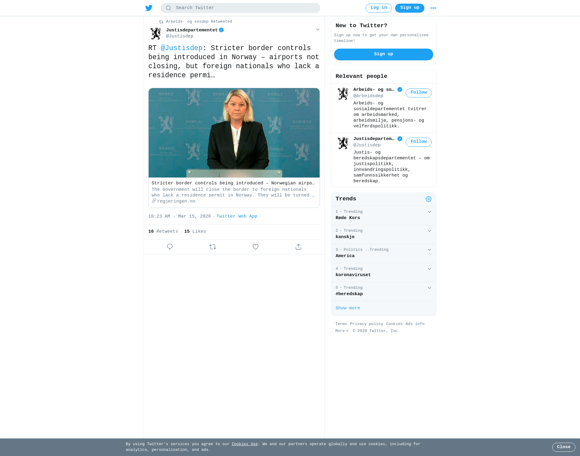 RT @Justisdep: Stricter border controls being introduced in Norway – airports not closing, but foreign nationals who lack a residence permit in Norway will be turned away at the border #coronavirus #corona #COVIDー19 #COVID19norway https://t.co/IEEZRQsXFg