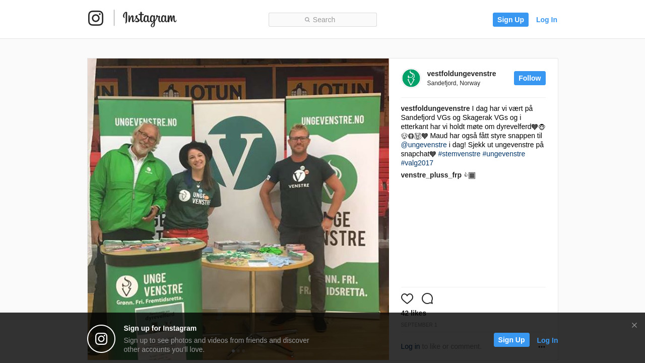 I dag har vi vært på Sandefjord VGs og Skagerak VGs og i etterkant har vi holdt møte om dyrevelferd💚🐵🐶🦁🐷💚 Maud har også fått styre snappen til @ungevenstre i dag! Sjekk ut ungevenstre på snapchat💚 #stemvenstre #ungevenstre #valg2017