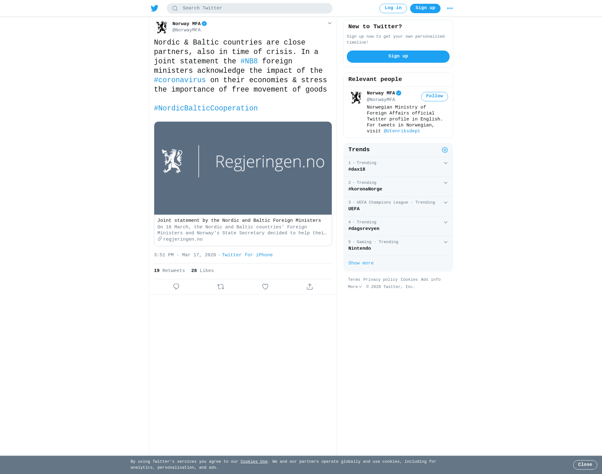 Nordic & Baltic countries are close partners, also in time of crisis. In a joint statement the #NB8 foreign ministers acknowledge the impact of the #coronavirus on their economies & stress the importance of free movement of goods