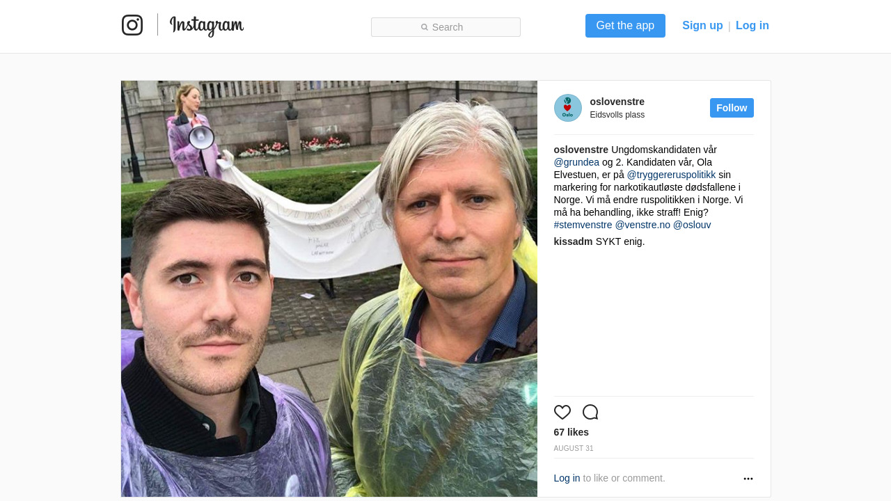 Ungdomskandidaten vår @grundea og 2. Kandidaten vår, Ola Elvestuen, er på @tryggereruspolitikk sin markering for narkotikautløste dødsfallene i Norge. Vi må endre ruspolitikken i Norge. Vi må ha behandling, ikke straff! Enig? #stemvenstre @venstre.no @oslouv