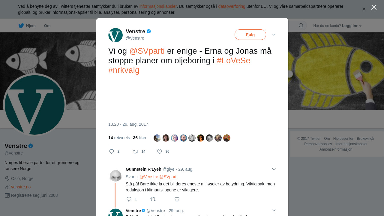 Vi og @SVparti er enige - Erna og Jonas må stoppe planer om oljeboring i #LoVeSe #nrkvalg https://t.co/hxl0Ibm3t7