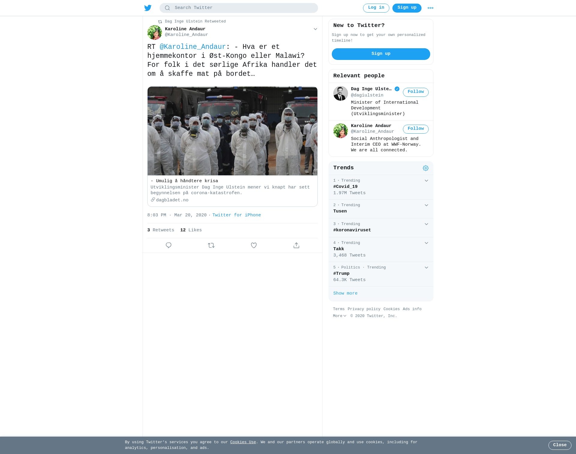 RT @Karoline_Andaur: - Hva er et hjemmekontor i Øst-Kongo eller Malawi? For folk i det sørlige Afrika handler det om å skaffe mat på bordet. Viktig fra @dagiulstein i @dagbladet. #Koronakrisen kommer til å ramme de fattigste landene mange ganger hardere enn det den rammer oss https://t.co/JqinaYXXKA