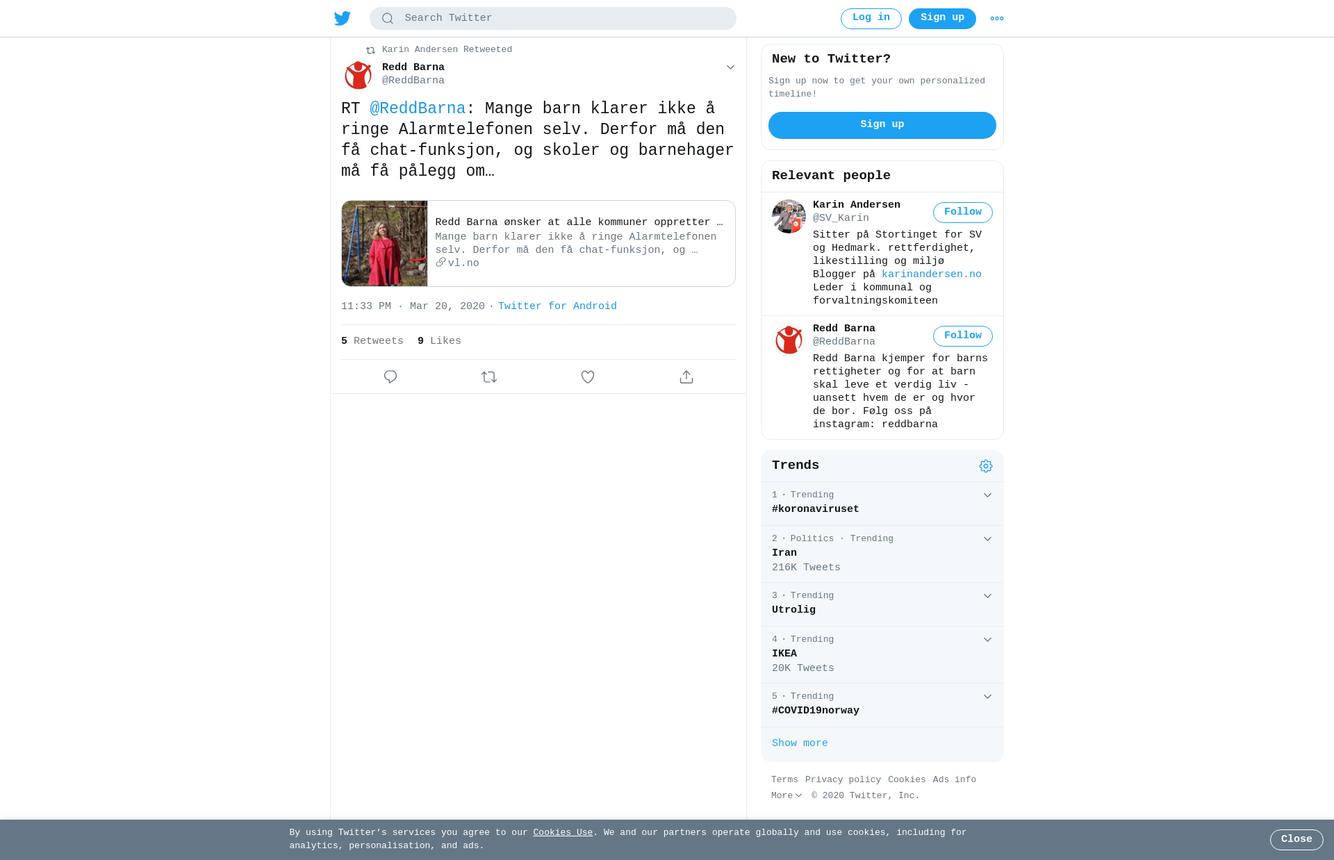 RT @ReddBarna: Mange barn klarer ikke å ringe Alarmtelefonen selv. Derfor må den få chat-funksjon, og skoler og barnehager må få pålegg om å følge opp barn som er særlig sårbare, oppfordrer vi sammen med @StineSofieS i brev til @Regjeringen #barndombetyralt https://t.co/ItiGv1hEjT