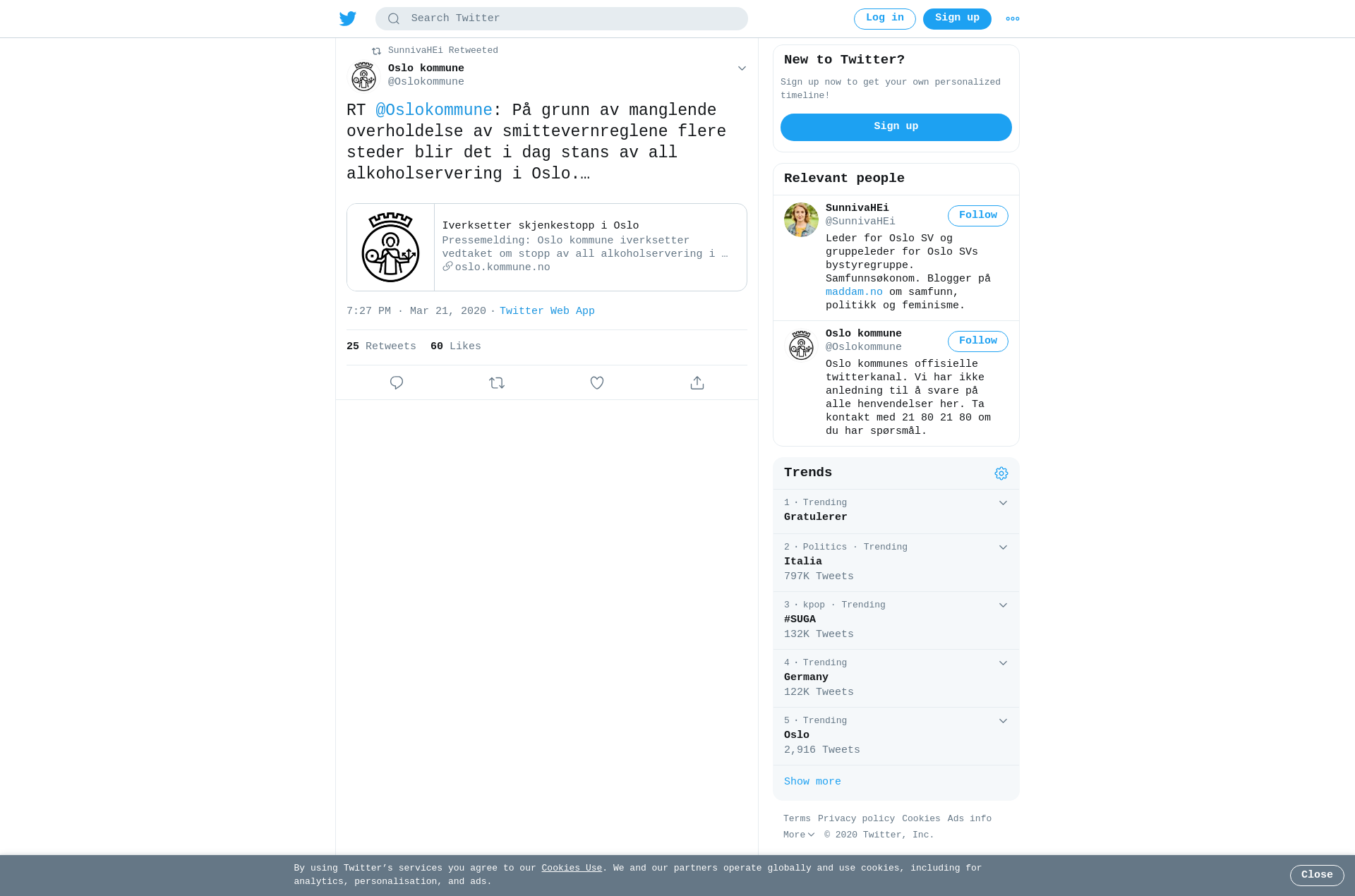 RT @Oslokommune: På grunn av manglende overholdelse av smittevernreglene flere steder blir det i dag stans av all alkoholservering i Oslo.