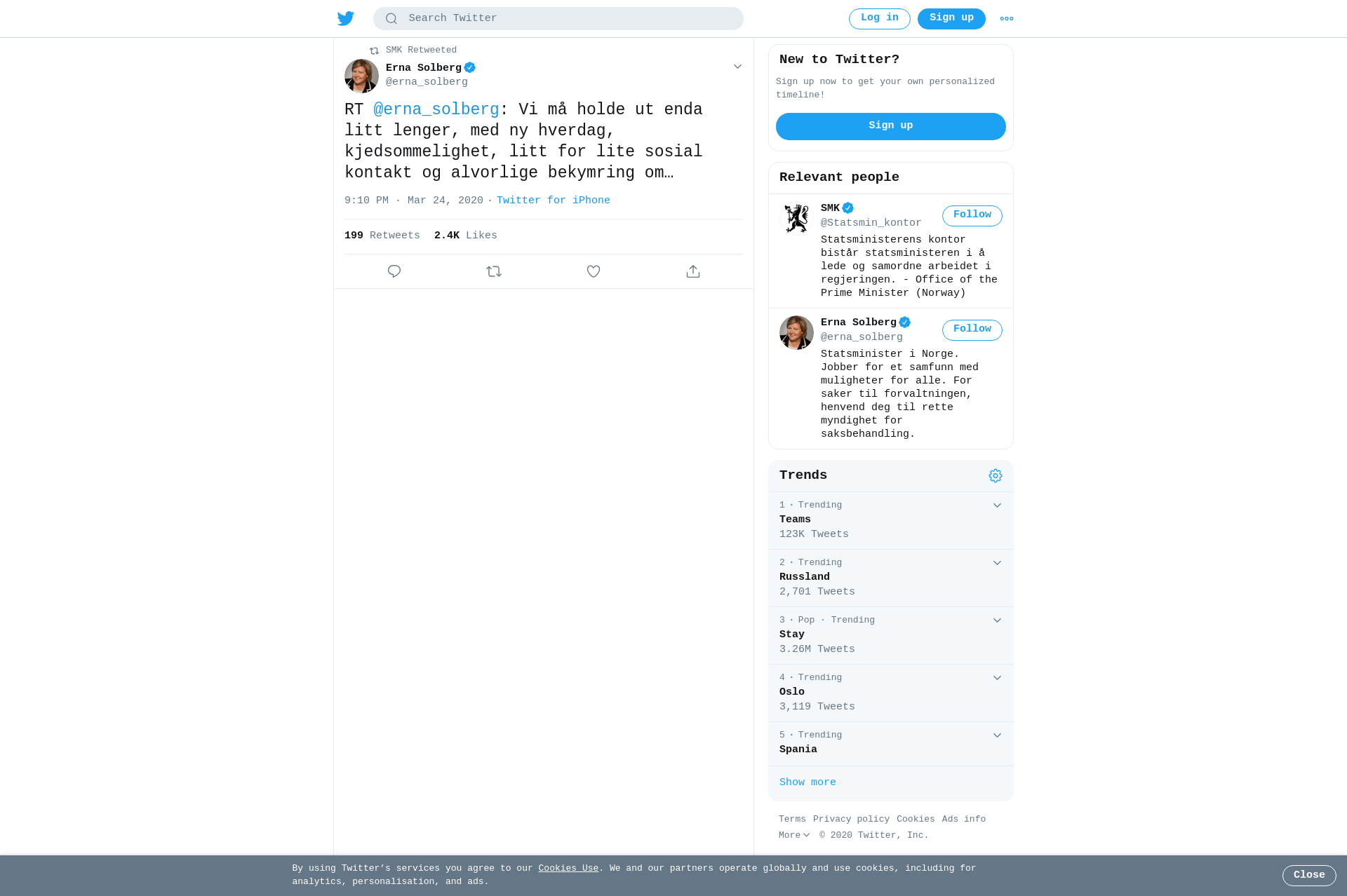 RT @erna_solberg: Vi må holde ut enda litt lenger, med ny hverdag, kjedsommelighet, litt for lite sosial kontakt og alvorlige bekymring om helse og jobb. Tusen takk til alle som hjelper til i dugnaden med å stanse spredningen av korona-viruset. Vi klarer dette sammen! #koronaNorge #covid19norway