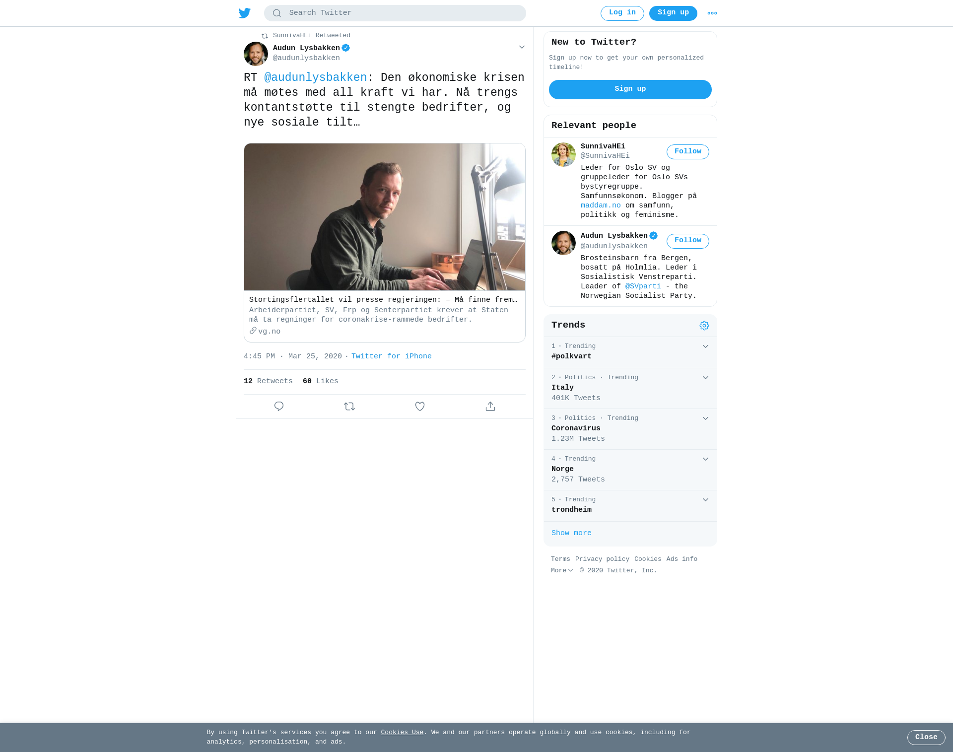 RT @audunlysbakken: Den økonomiske krisen må møtes med all kraft vi har. Nå trengs kontantstøtte til stengte bedrifter, og nye sosiale tiltak for folk uten inntekt. https://t.co/I0kVAX7yUJ