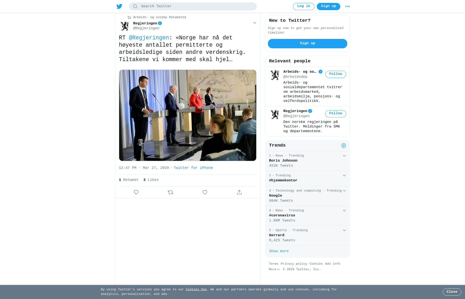 RT @Regjeringen: «Norge har nå det høyeste antallet permitterte og arbeidsledige siden andre verdenskrig. Tiltakene vi kommer med skal hjelpe folk og bedrifter gjennom krisen» sier statsminister @erna_solberg.