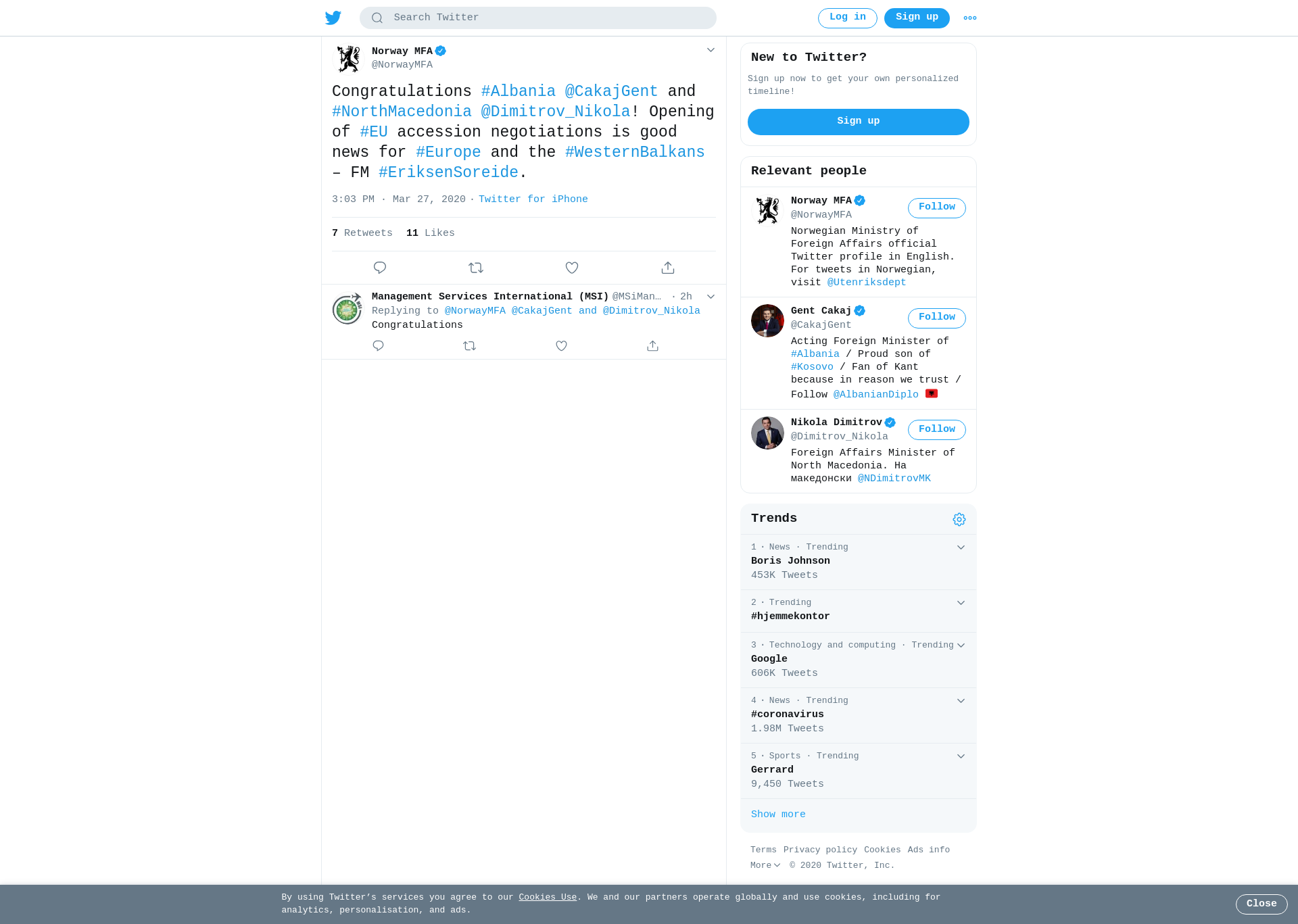 Congratulations #Albania @CakajGent and #NorthMacedonia @Dimitrov_Nikola! Opening of #EU accession negotiations is good news for #Europe and the #WesternBalkans – FM #EriksenSoreide.