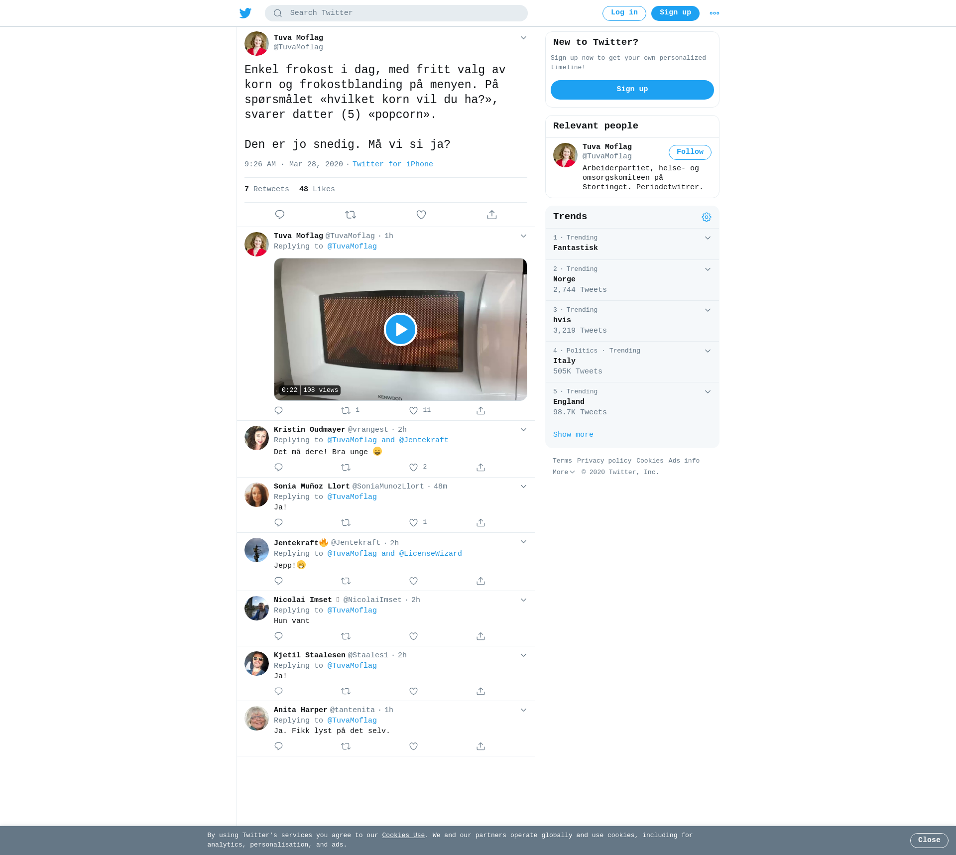 Enkel frokost i dag, med fritt valg av korn og frokostblanding på menyen. På spørsmålet «hvilket korn vil du ha?», svarer datter (5) «popcorn». Den er jo snedig. Må vi si ja?