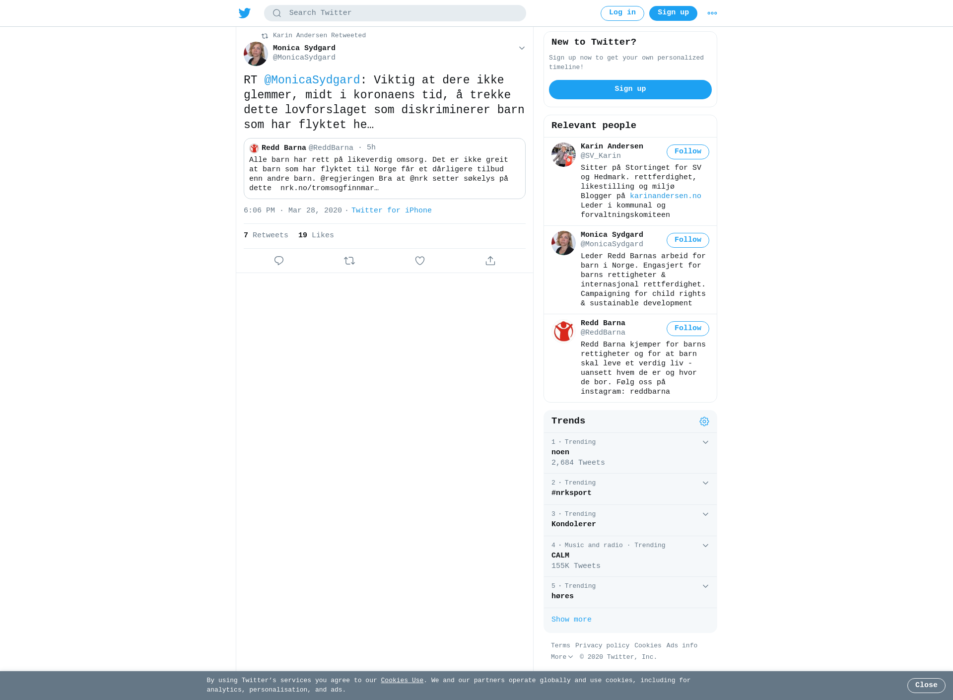 RT @MonicaSydgard: Viktig at dere ikke glemmer, midt i koronaens tid, å trekke dette lovforslaget som diskriminerer barn som har flyktet helt alene til Norge Monica Mæland, @abidraja , @kjellingolf!Gi dem likeverdig omsorg under barnevernet som andre barn uten omsorgspersoner.