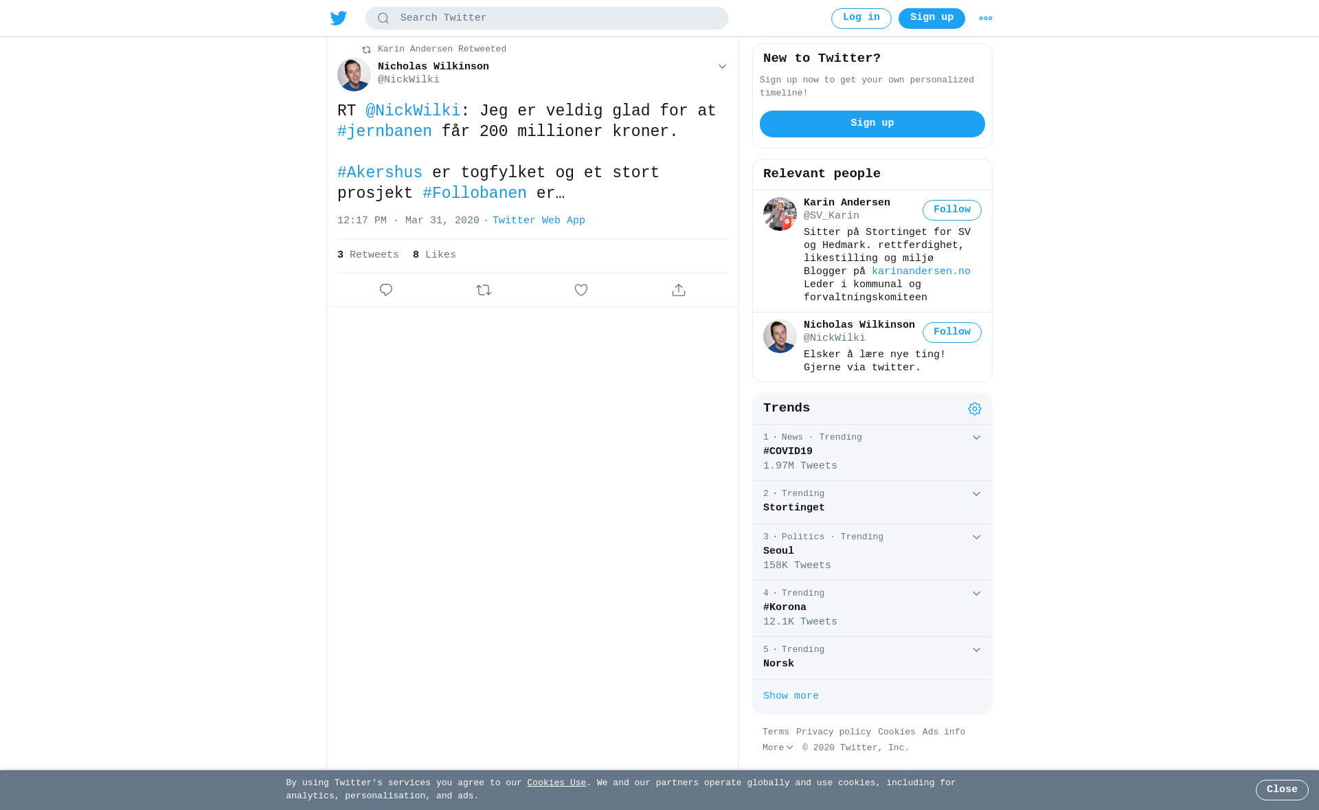 RT @NickWilki: Jeg er veldig glad for at #jernbanen får 200 millioner kroner. #Akershus er togfylket og et stort prosjekt #Follobanen er…