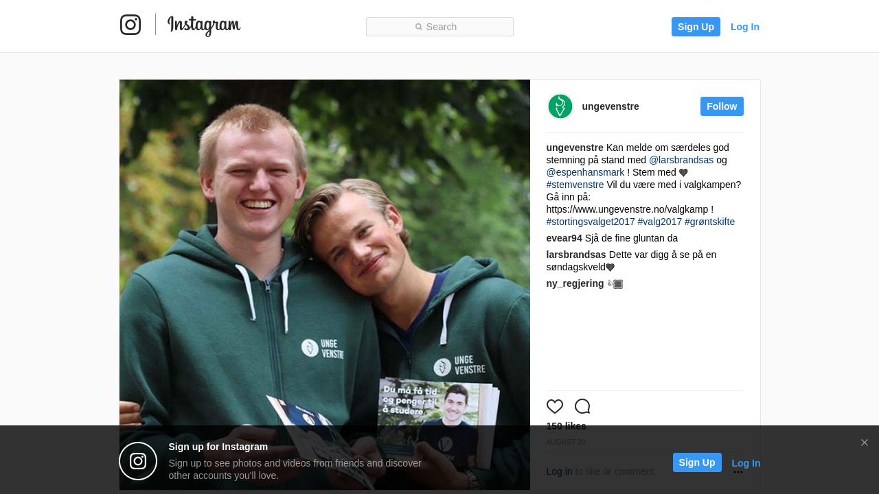 Kan melde om særdeles god stemning på stand med @larsbrandsas og @espenhansmark ! Stem med 💚 #stemvenstre Vil du være med i valgkampen? Gå inn på: https://www.ungevenstre.no/valgkamp ! #stortingsvalget2017 #valg2017 #grøntskifte