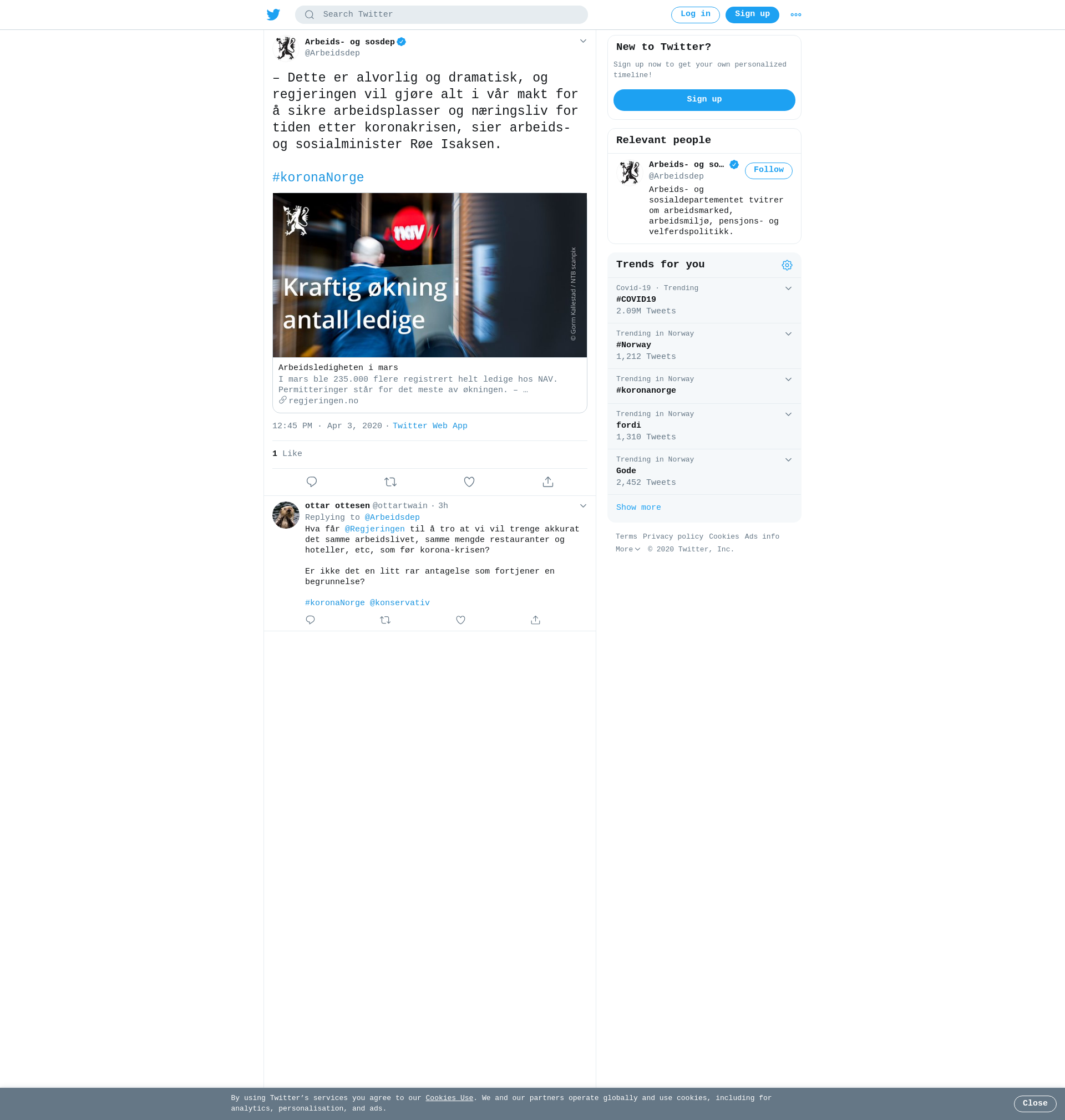 I mars ble 235.000 flere registrert helt ledige hos NAV. Permitteringer står for det meste av økningen. – Ledighetsøkningen i mars er den største i en enkeltmåned noen gang. Koronapandemien treffer verden og Norge hardt. Ved siden av liv og helse, er r...