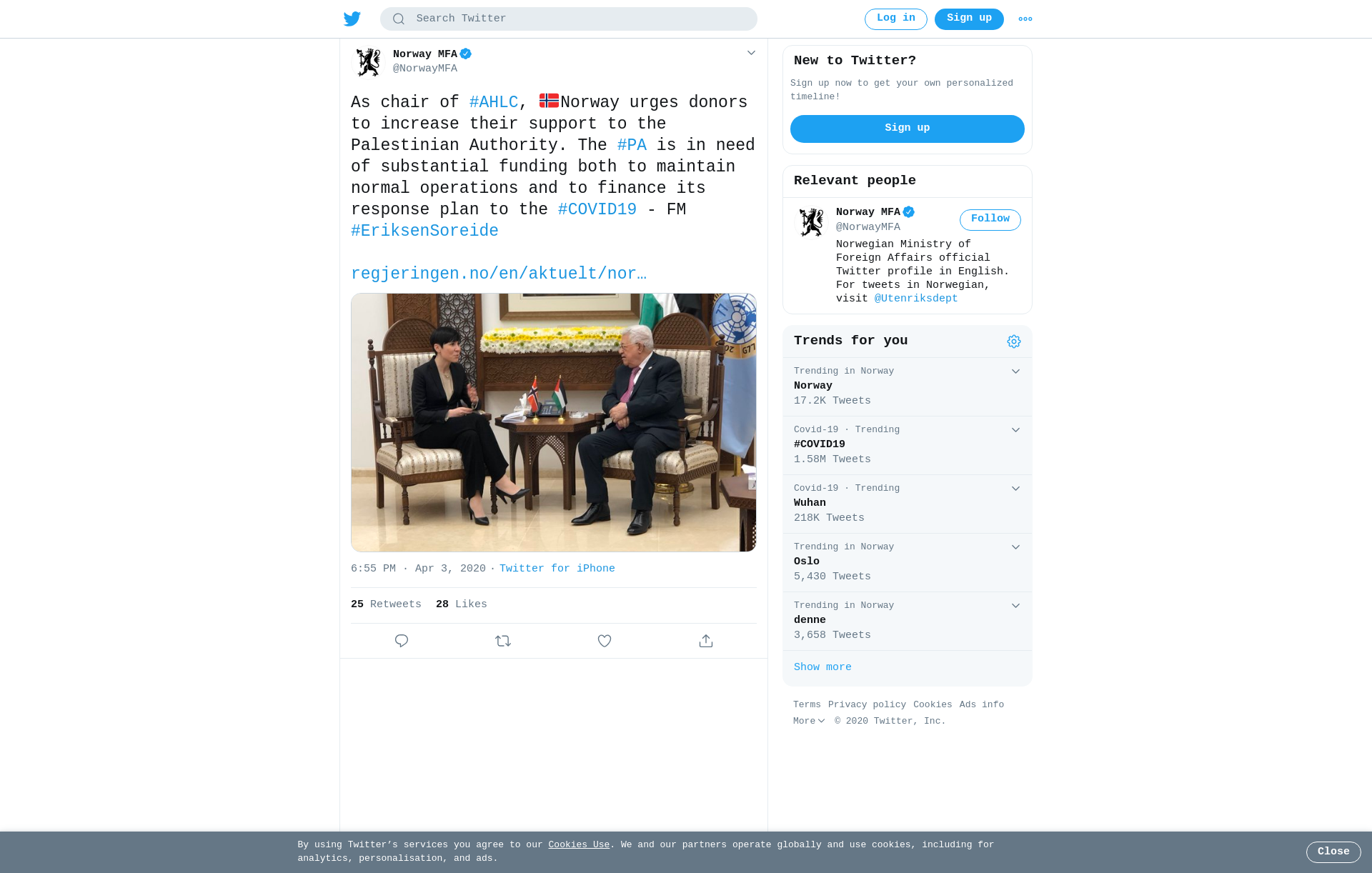 Norwegian Foreign Minister urges donors to increase support for Palestine