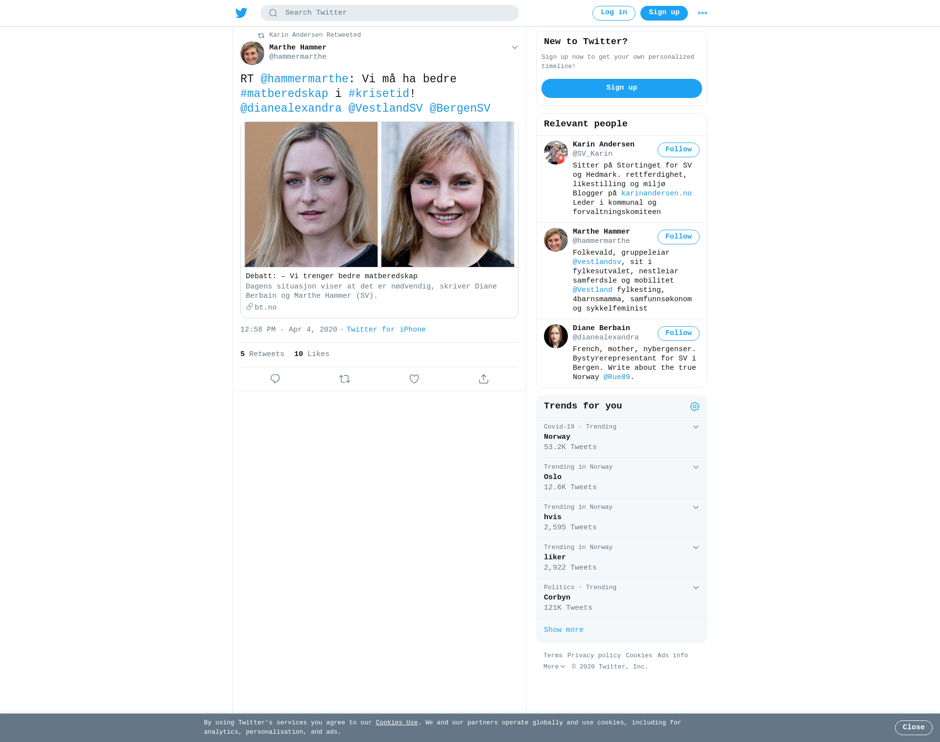 RT @hammermarthe: Vi må ha bedre #matberedskap i #krisetid! @dianealexandra @VestlandSV @BergenSV https://t.co/a73dVgDbLg