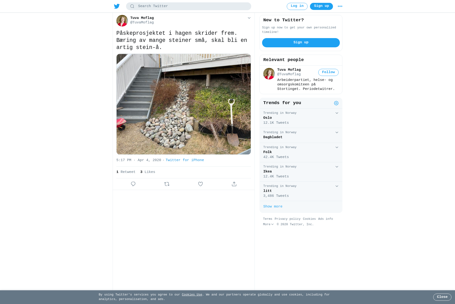 Påskeprosjektet i hagen skrider frem. Bæring av mange steiner små, skal bli en artig stein-å. https://t.co/ASq5gbITt8