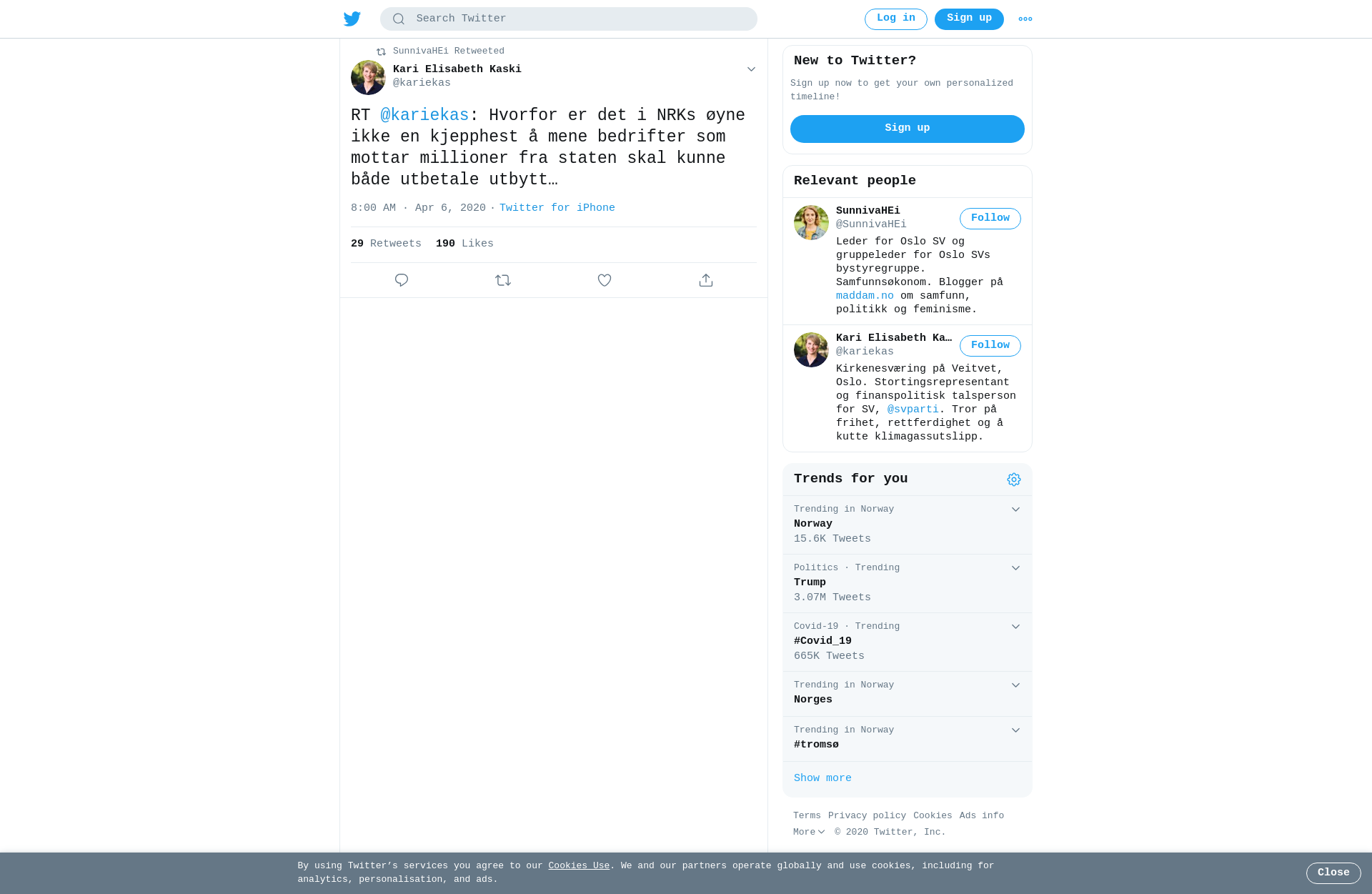 RT @kariekas: Hvorfor er det i NRKs øyne ikke en kjepphest å mene bedrifter som mottar millioner fra staten skal kunne både utbetale utbytte og si opp ansatte, mens å mene det motsatte og at man må stille krav er en en kjepphest? #polkvart