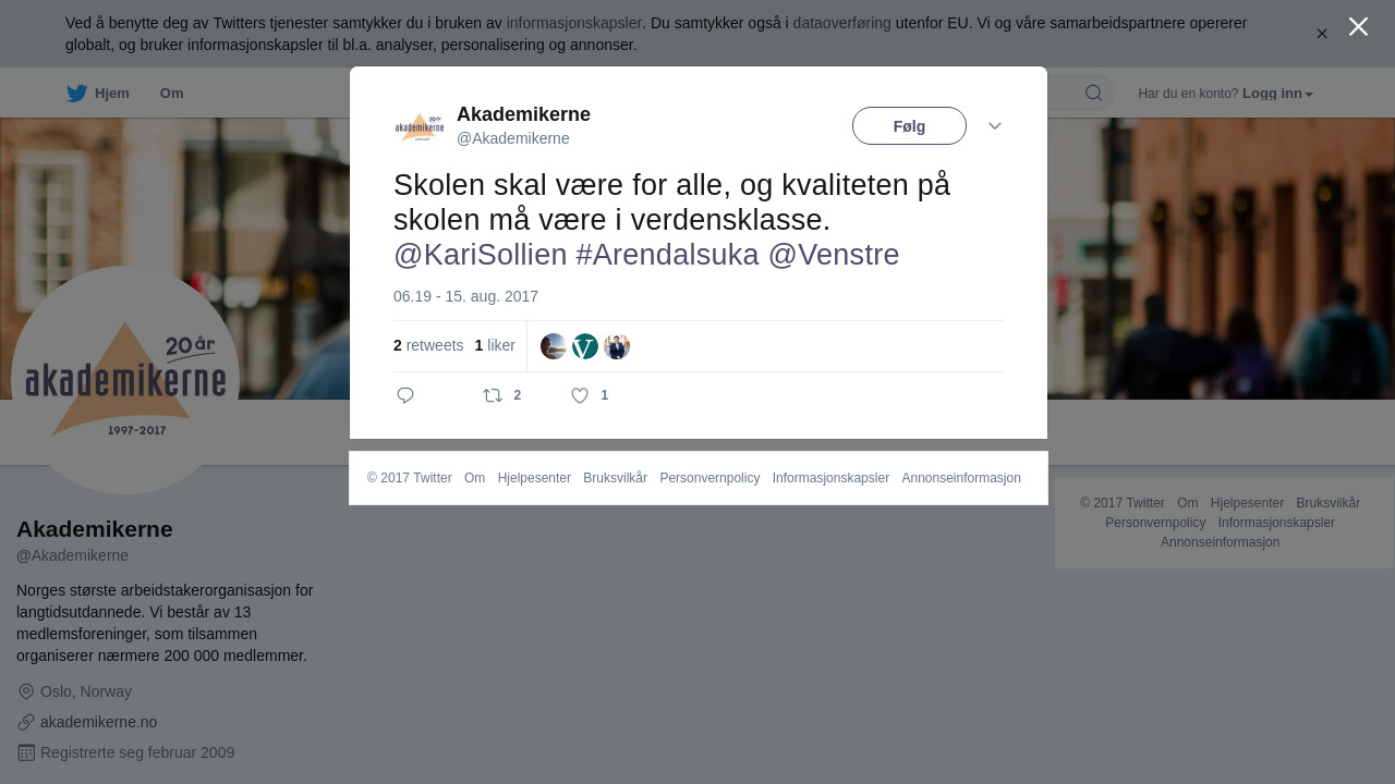 RT @Akademikerne: Skolen skal være for alle, og kvaliteten på skolen må være i verdensklasse. @KariSollien #Arendalsuka @Venstre