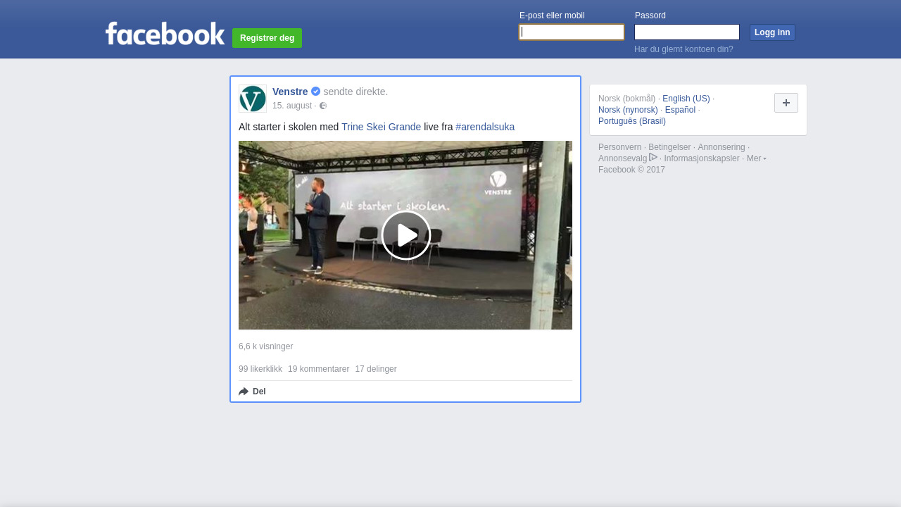 venstre.no på Facebook