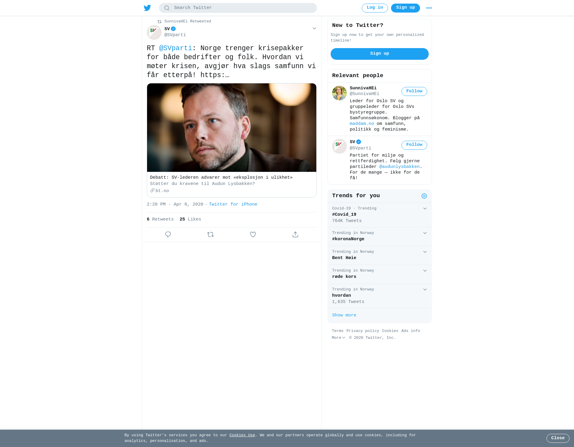 RT @SVparti: Norge trenger krisepakker for både bedrifter og folk. Hvordan vi møter krisen, avgjør hva slags samfunn vi får etterpå! https://t.co/079KbJT0x2