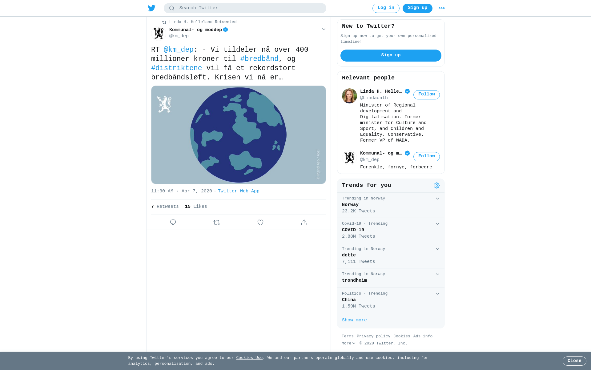 RT @km_dep: - Vi tildeler nå over 400 millioner kroner til #bredbånd, og #distriktene vil få et rekordstort bredbåndsløft. Krisen vi nå er inne i viser hvor avhengig samfunnet vårt er av en god #digital #infrastruktur, sier @Lindacath #KoronaNorge https://t.co/iIPQnfk4yi https://t.co/UIfhknX7x0